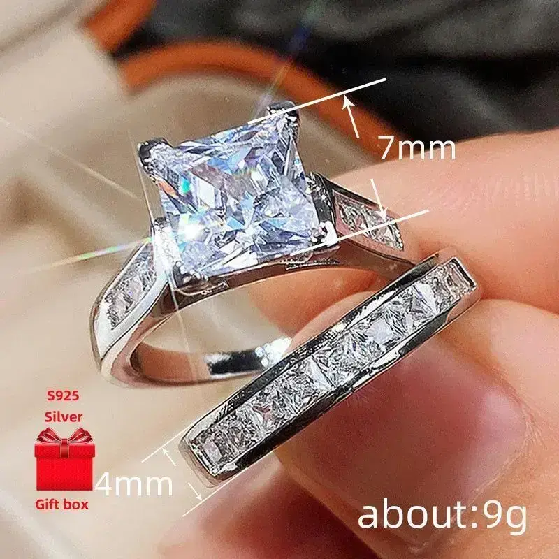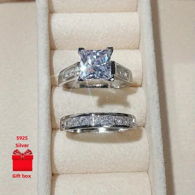 2-Piece 925 Silver Square Wedding Ring Set for Women - Elegant Exquisite Design with Gift Box - Perfect for Daily & Festival Gifts