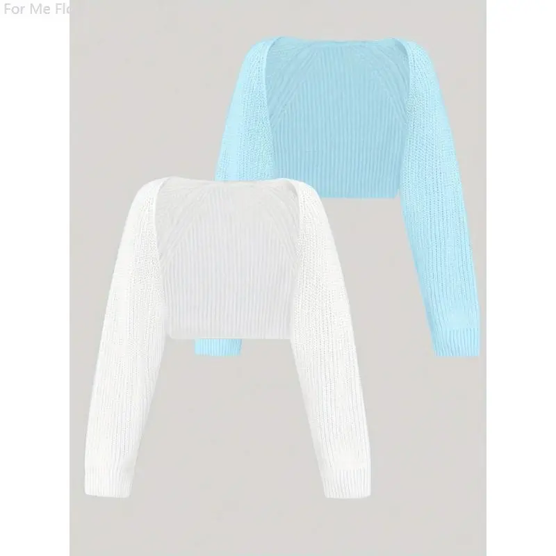 Solid Color Knit Crop Cardigan 2 Packs, Elegant Long Sleeve Shrug For Spring & Fall, Women's Clothing
