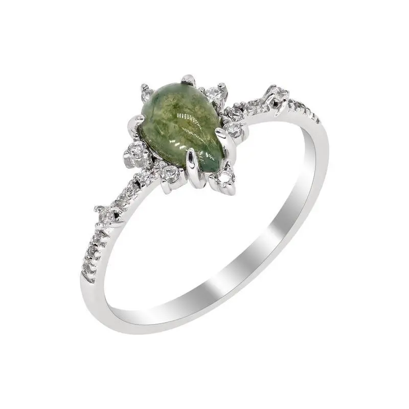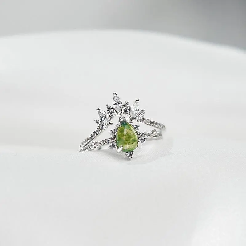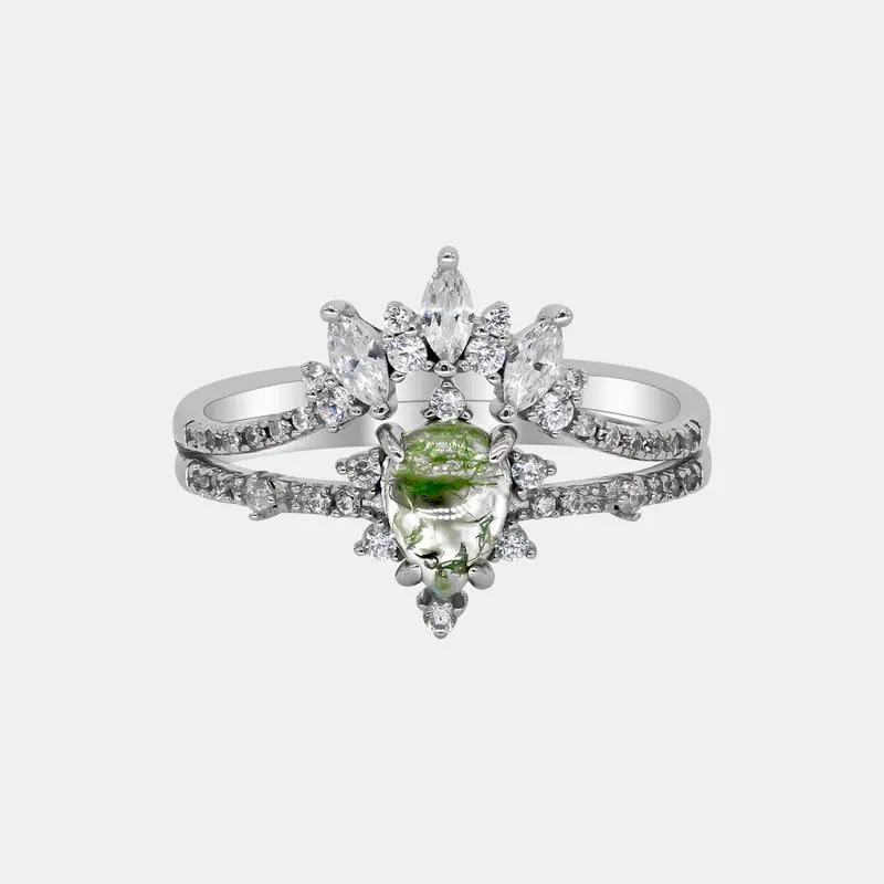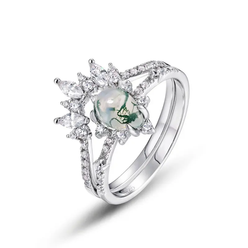 The enchanting piece features a natural moss agate gemstone adorned with delicate patterns resembling glistening frost on a winter morning. 1. **Wear and Care**: Avoid wearing gemstone during risky activities and steer clear of oils to prevent shine loss. For both gemstone and silver, avoid high temperatures and direct sunlight. Keep all jewelry in a safe, dry place when not being worn. Ensure gemstone and silver pieces are completely dry, and store silver in airtight bags to prevent oxidation. 3. **Regular Checks and Maintenance**: Regularly check central stone settings and reinforce if loose. Clean central stone and silver regularly to maintain their shine and prevent buildup. 4. **Cleaning Methods**: Use mild cleansers for gemstone and special cloths for silver. Ensure all jewelry pieces are dry after cleaning before storage. 5. **Tarnish Treatment**: For tarnished silver, employ a professional polish spray and a cotton swab to gently clean and restore shine. Logistic Note: We will do our best to package your item, but please note that shipping may sometimes result in minor damage to the package. In addition, unforeseen factors may also cause delivery delays. Don't worry! These are normal. But no matter what the problem is, please find us at the first time and we will solve it for you. Customer Service Support: Dear, before product ratings on an order, we advise you that if you have any questions or concerns - whether related to products, logistics or personal reasons - please feel free to contact our customer service team. We will be happy to assist you with any questions you may have. Thank you for your understanding!
