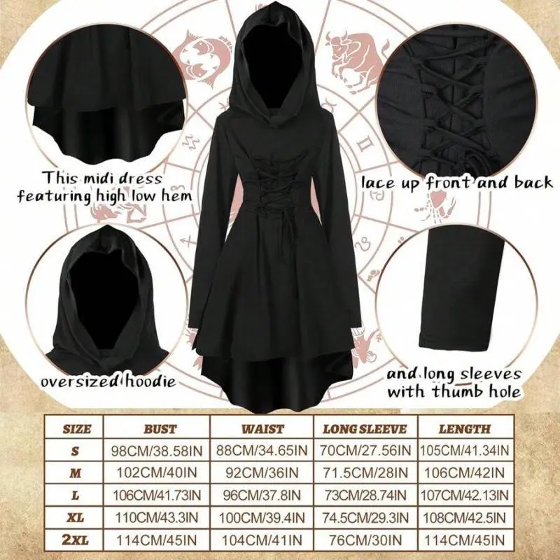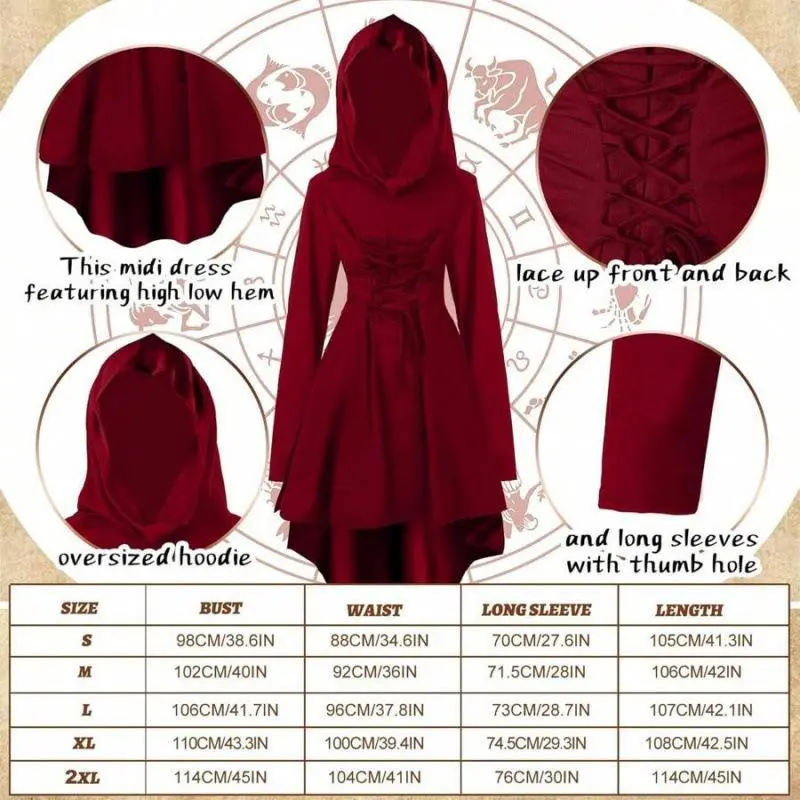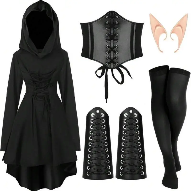 HalloweenWomen'sRenaissanceFairyCostumeSetMedievalHoodedRobeElfEars5-PieceSet