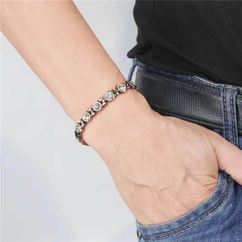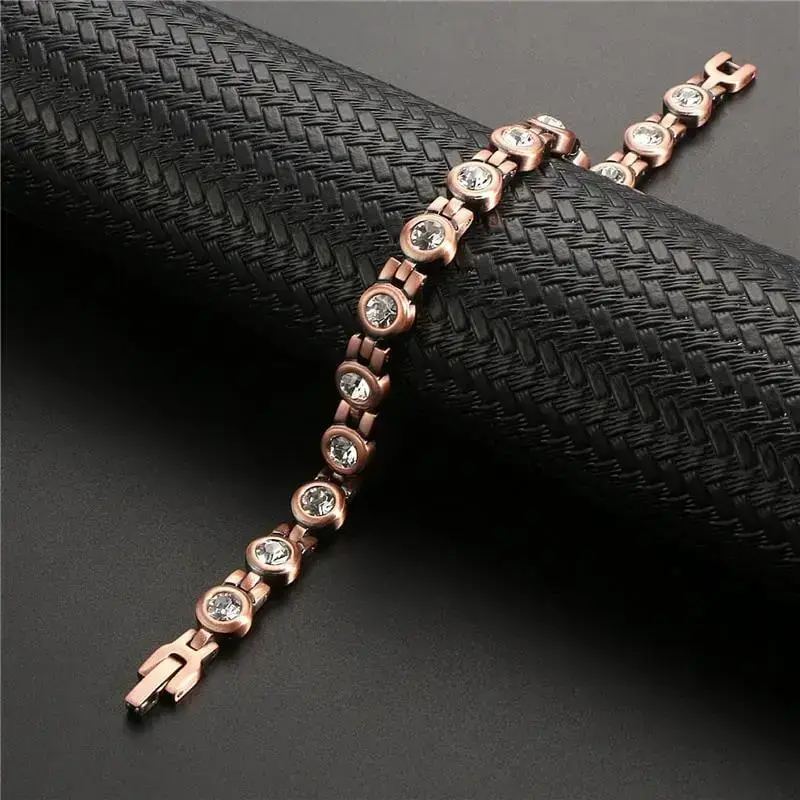 🔥 AVAILABLE 🔥 About this item Pure Copper Magnetic Bracelets, Cubic Zirconia Bracelets, Vintage Copper Jewelry,Gift for Mom Wife ✦【99.99% PURE COPPER】This copper magnetic bracelets is made of 99.99% pure copper.It's hypoallergenic,lead and nickel free,strong and durable. ✦【size】 Length:20cm, Width:8mm Weight: 4g. Open design is easily adjustable, fit to any size with just a light squeeze. ✦【VintageSTYLE】It has a beautiful appearance and is suitable for any occasion.No one will know that this is a magnetic bracelet. Exquisite design can definitely make your eyes shine. ✦【 Fashion Copper Jewelry Gift】Generous, practical,beautiful. Elegant stylish design for women and men, suitable for many occasions, which will compliment your individual style. ✦【WOLLET MAGNETIC JEWELRY RISK FREE PURCHASE】Wollet Magnetic Jewelry Risk Free Purchase. Full 60-Day Money Back Guarantee. info:We aim to show you accurate product information. Manufacturers, suppliers and others provide what you see here, and we have not verified it. See our disclaimer