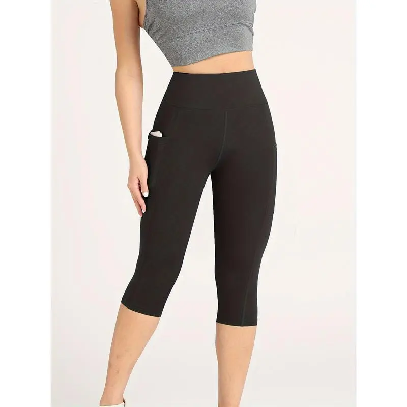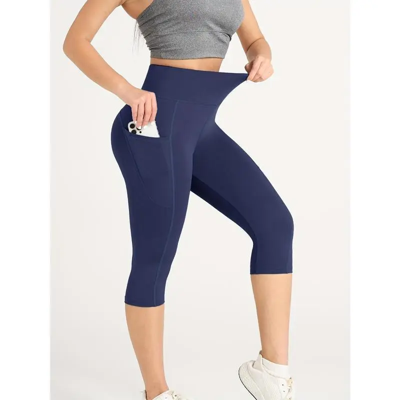 4-Pack High Waisted Booty Sculpting Yoga Capris, Compression Leggings with Side Phone Pocket Fitness Pants