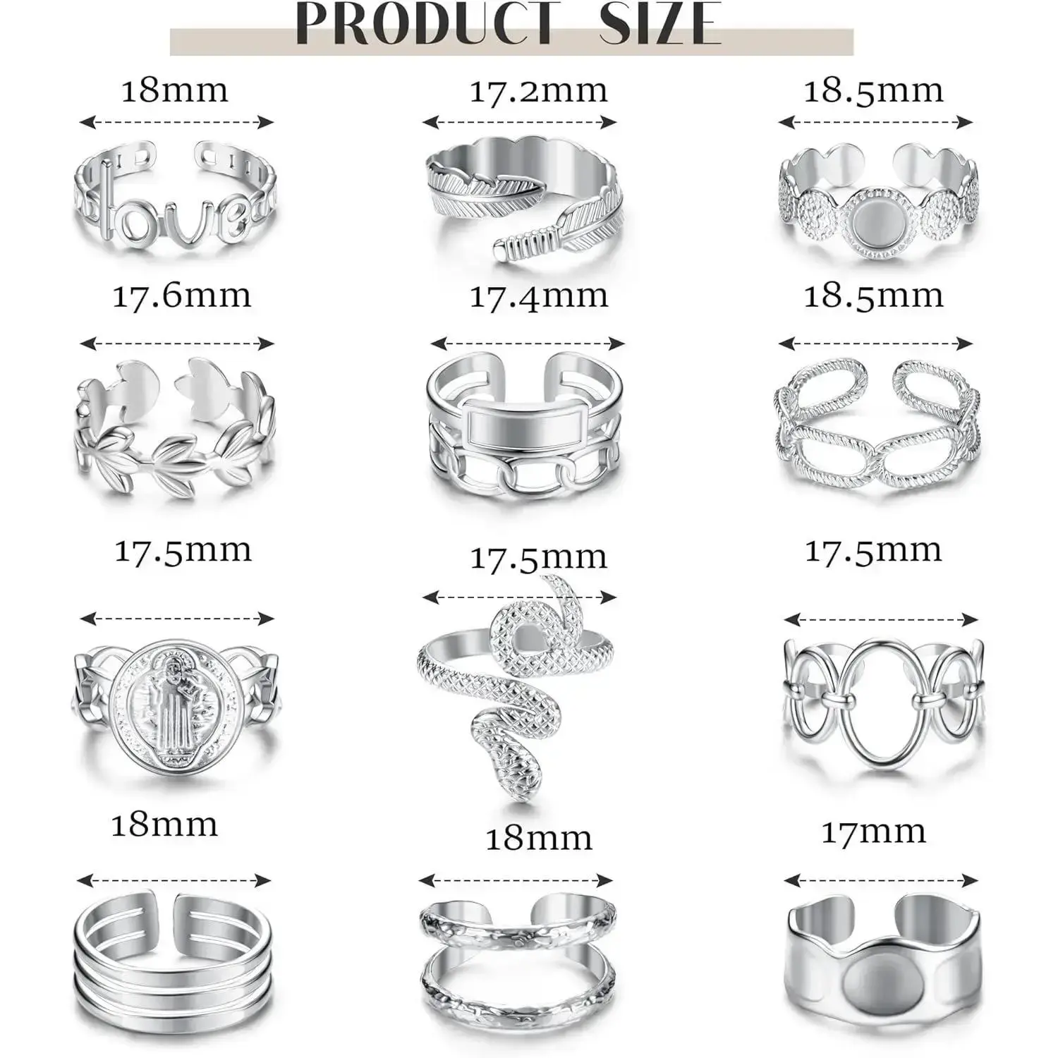 Elevate Your Style with FLORIDECO ✨ Discover the FLORIDECO 12-piece stainless steel ring set. Perfect for boho midi lovers, these rings offer endless mixing and matching options. Each piece enhances your daily look effortlessly. 🌸 Adjustable Open Ring Bands The FLORIDECO pack includes adjustable open ring bands. This feature ensures a perfect fit for any finger size. Resize the band for comfort. No more tight or loose rings! 📏 Unique Twisted Signet Design Some rings feature a twisted signet design, adding a trendy twist. These unique pieces elevate your look. The design is stylish and distinctive, making them a standout addition. 🔄 Non-Tarnish Gold Plating Non-tarnish gold plating guarantees lasting shine. Enjoy the beauty of the rings without worry. Stay stylish and confident with FLORIDECO's commitment to quality. ✨