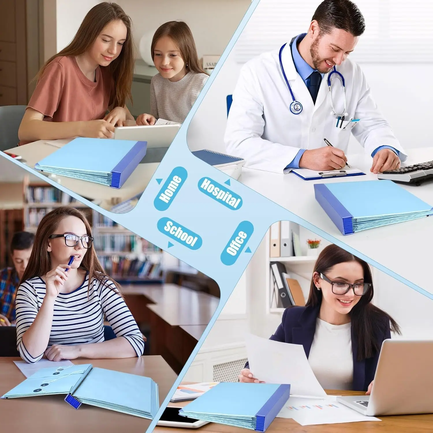 ·3 vertical and 3 horizontal envelopes hold 8 1/2 x 11" papers; 4 half-size envelopes hold smaller items.