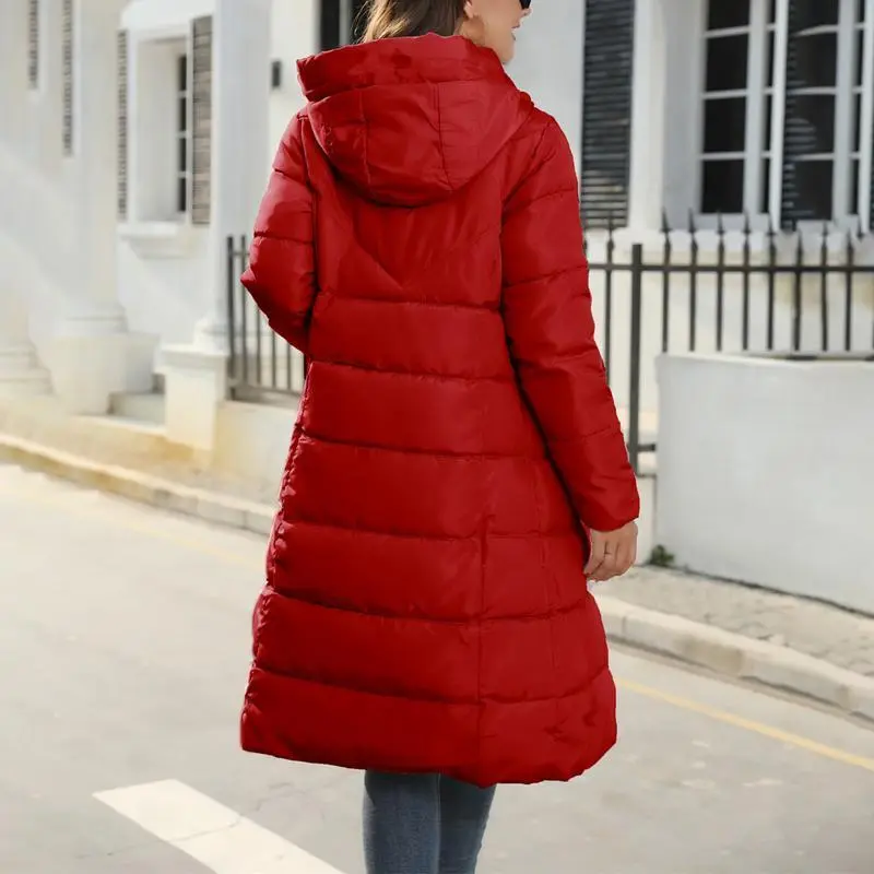 Women'sLongPufferJacketWinterWarmQuiltedCoatLongSleeveZipUpOutwearwithHood Tops Womenswear