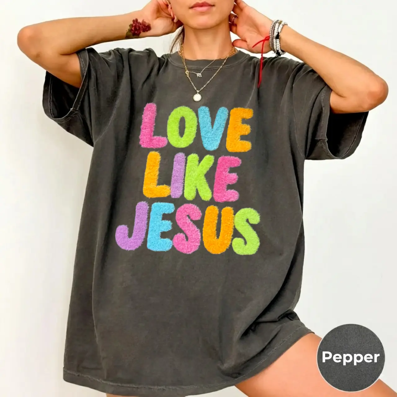 5. Love Like Jesus FLUFFY Women's Comfort Colors T-Shirt - Vintage Blank Essential Shirt, Streetwear Basic Aesthetic, Oversized Casual Style, Everyday Outfit Gift for Men Women