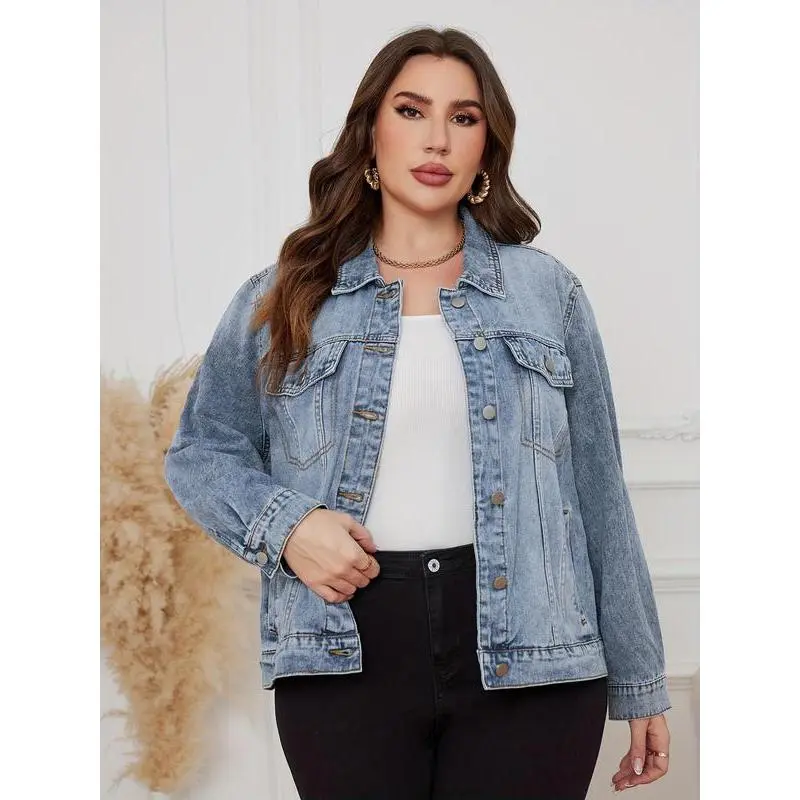 ��Retro Appeal��: This vintage denim jacket features a distinctive button fly, enhancing its classic and timeless look. ��Plus Size Fit��: Specifically crafted for fuller figures, this jacket offers a fitted silhouette that flatters without compromising comfort. ��Woven Quality��: Made from high-quality woven denim, this jacket ensures durability while providing a textured finish. ��Easy Maintenance��: Designed for practicality, it is and easy to care for, maintaining its look with minimal effort. ��Unrestricted Movement��: Long sleeves and a relaxed fit provide freedom of movement, making it suitable for various daily activities.