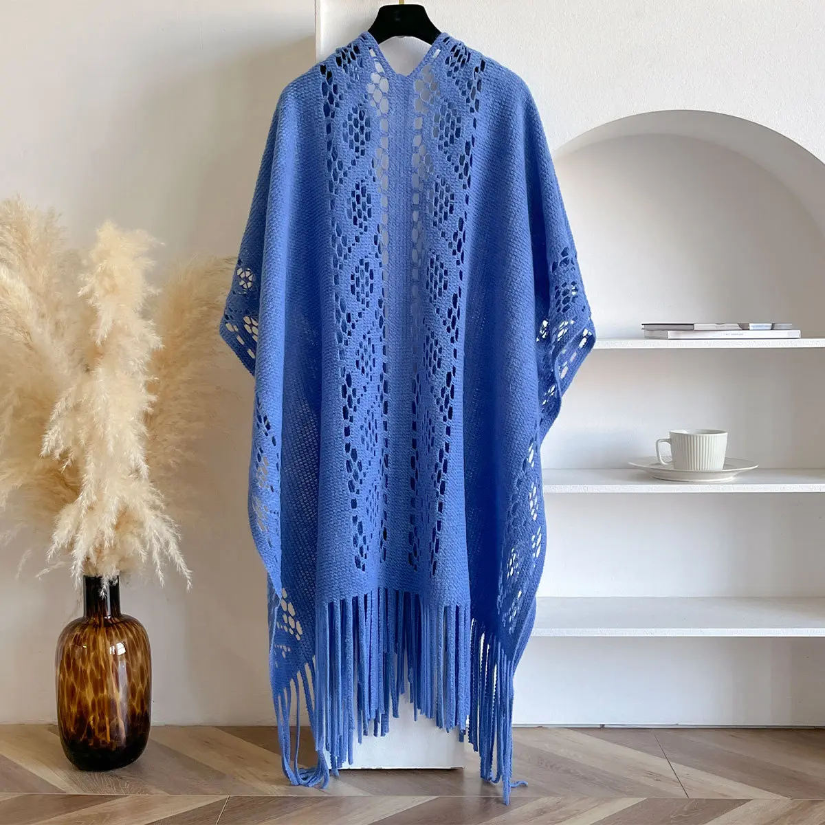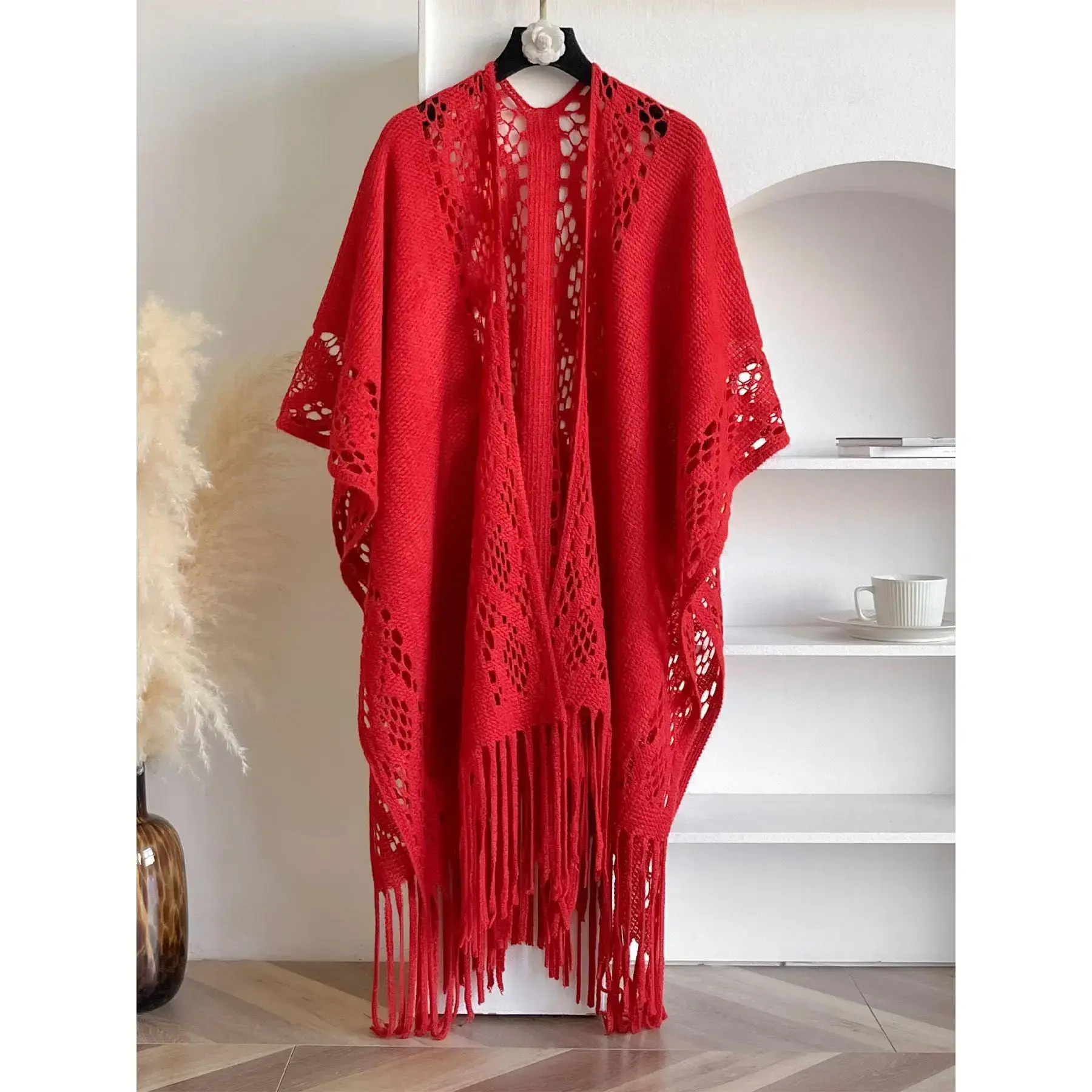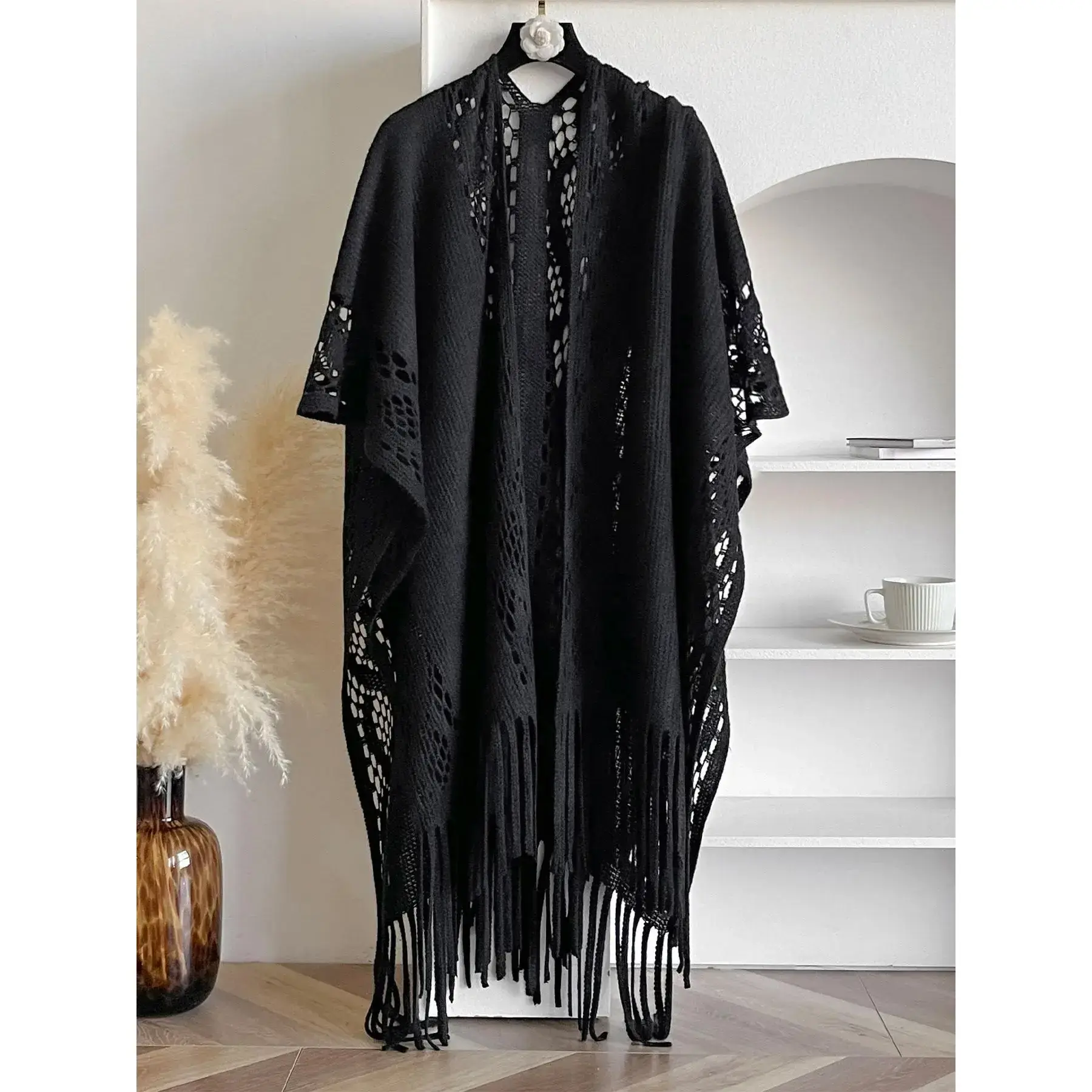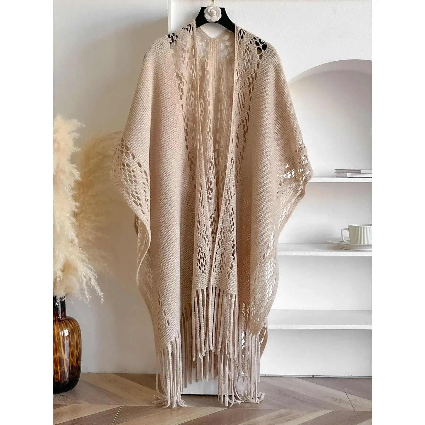 Women's Solid Color Crochet Fringe Trim Shawl, Tassel Decor Shawl, Casual Open Front Shawl for Daily Wear, Fashion Accessories for Women & Girls