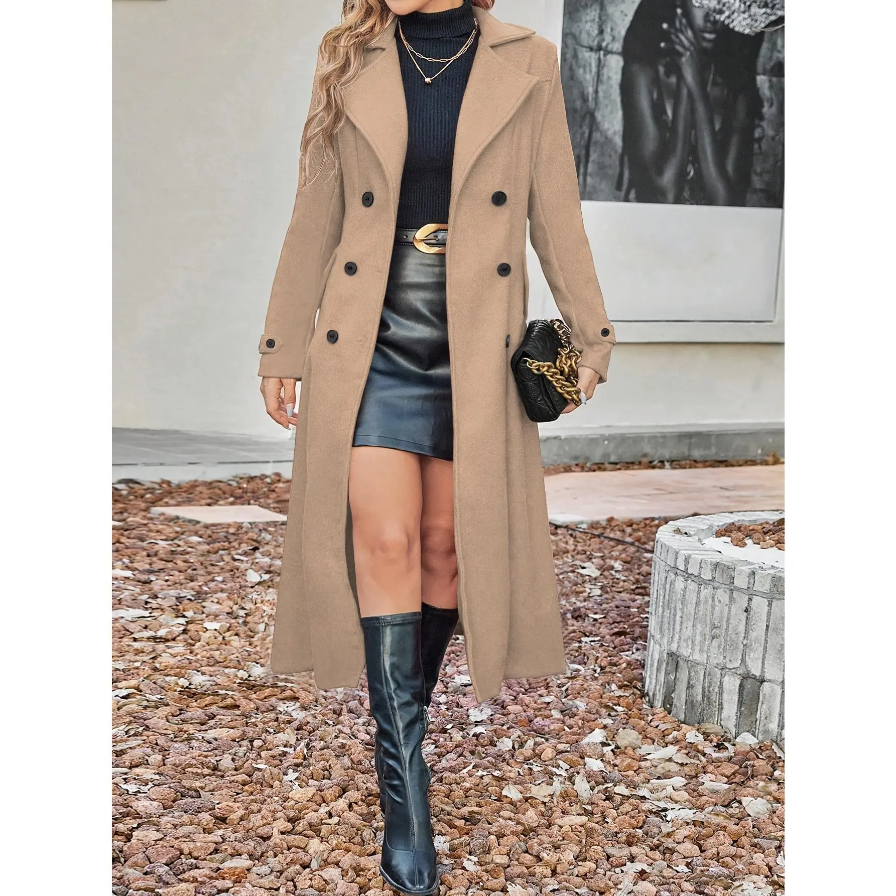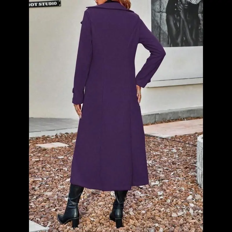 Women's Solid Double Button Lapel Woolen Coat, Casual Elegant Long Sleeve Long Coat for Women, Women's Clothing for Autumn & Winter Valentine's Day, Gift for Her, Jackets for Women, Longsleeves Clothes for Women, Solid Color Jacket