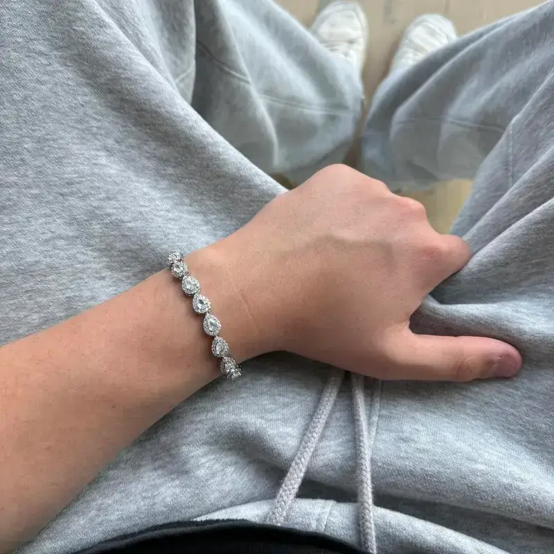 Tear Drop Moissanite Bracelet Tennis Bracelet Silver Plated Iced Out 5mm Bracelet For Men - 17cm + 3.5cm Extension Iced Out Bracelet permanent jewelry jewelry designer
