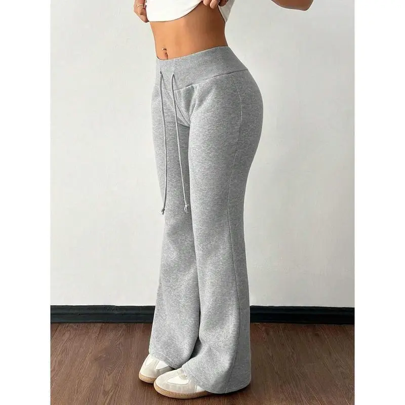 2025Casual Low-Waist Drawstring Waist Elastic Sports Pants Flared Pants Sweatpants Thermal Lined Composite Velvet Suitable For Autumn And Winter Loose Fitting Leggings