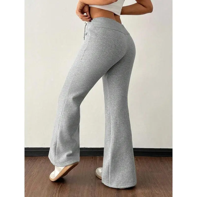 Lined? :Unlined/Festivals:Thanksgiving Day/Lined For Added Warmth:No/Pattern Type:Plain/Style:Casual/Closure Type:Elastic Waist/Pockets:No/Details:Split, Drawstring, Knot/Color:Light Grey/Type:Flare Leg/Waist Line:Low Waist/Length:Extra Long/Fit Type:Regular Fit/Temperature:Spring/Fall (18-25 ??C/63-77 ??F)/Fabric Elasticity:Non-Stretch/Material:Knitted Fabric/Composition:100% Polyester/Care Instructions:Machine wash or professional dry clean/Belt:No/Sheer:No