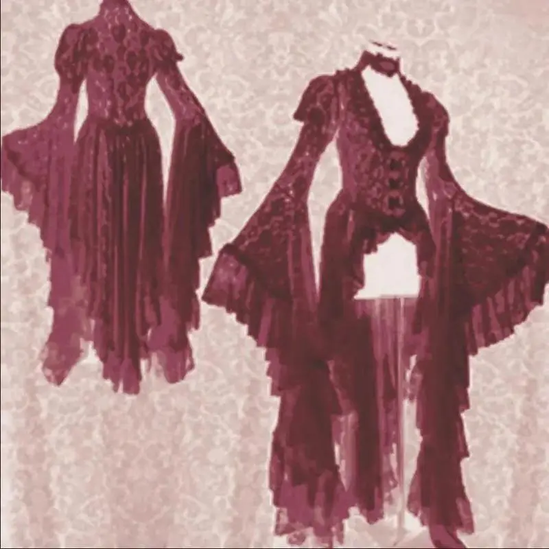 Gothic women's white retro solid color lace trumpet sleeve medieval cardigan role play elegant long tail coat Victorian ball uniform