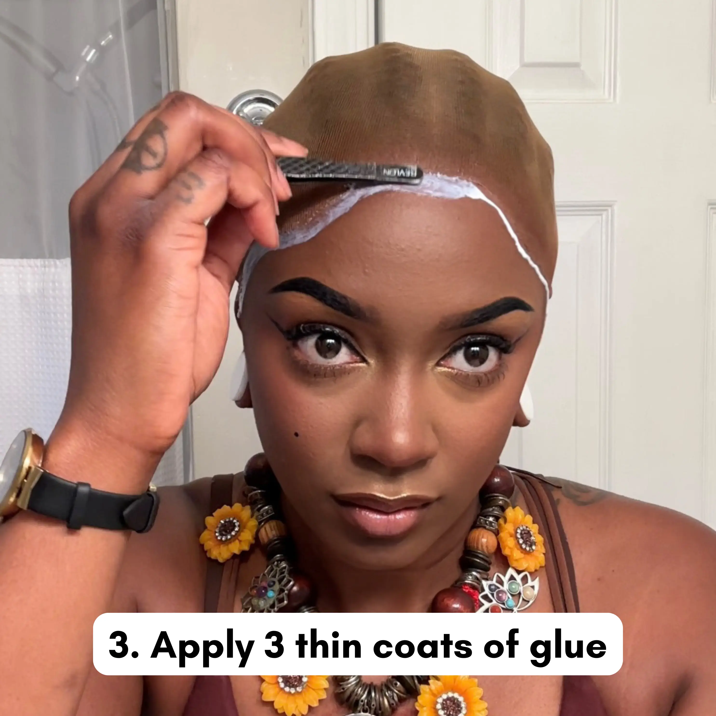 3. Apply lace glue 1 inch from hairline