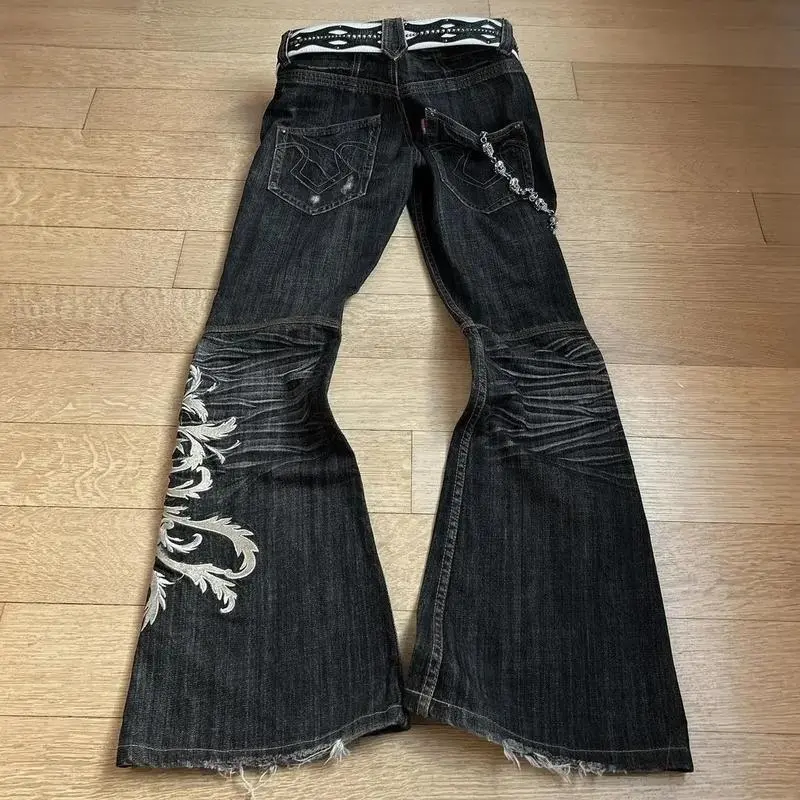 European and American new heavy industry embroidered jeans men's and women's punk flared pants y2k washed trousers dark pants Menswear