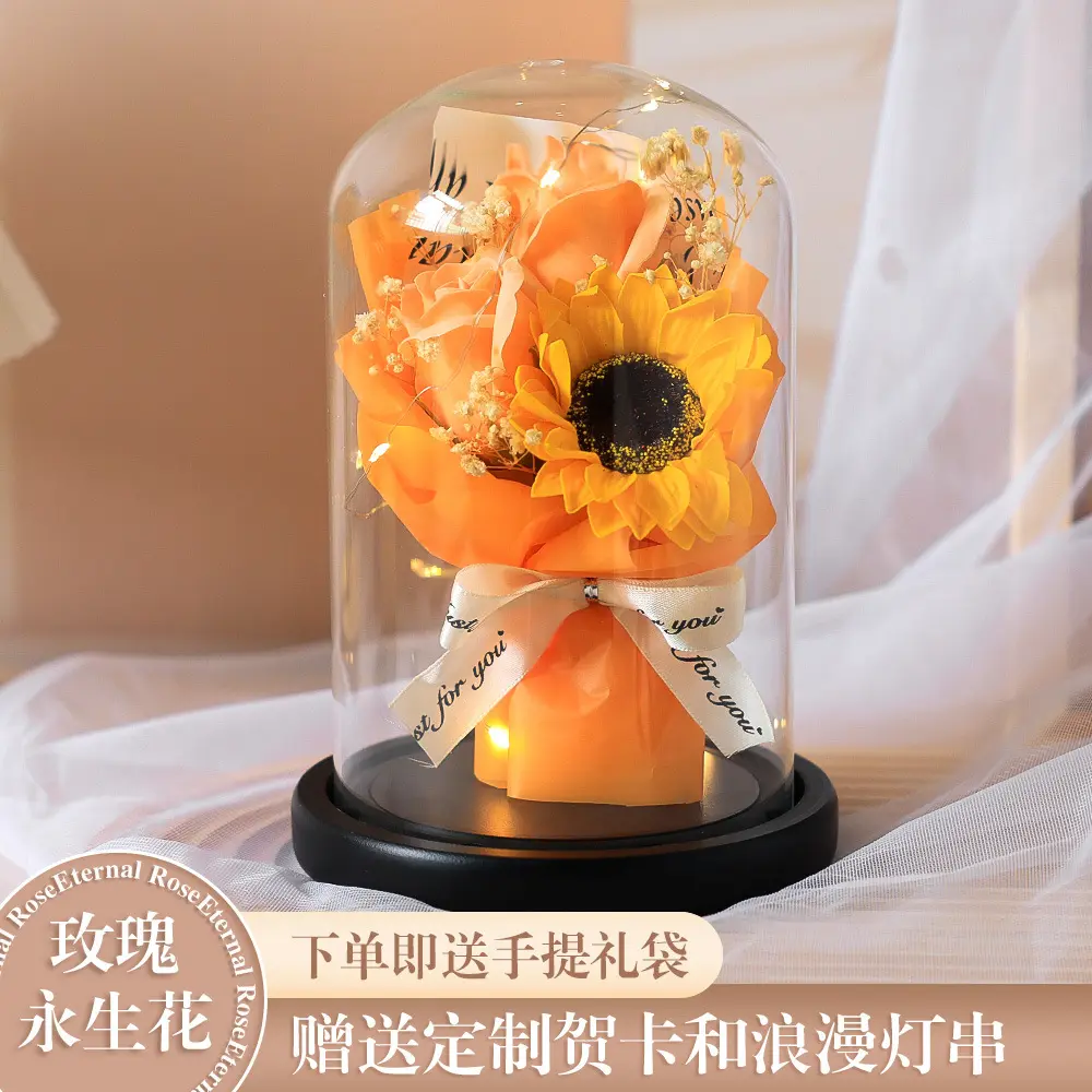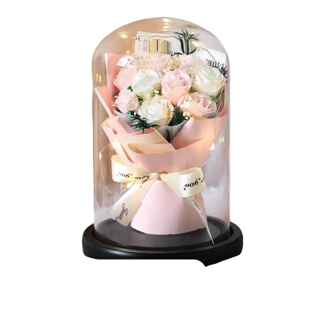 Exquisite Glass Dome Display: A high-quality transparent glass dome paired with a solid wood base, dustproof design, can be placed directly on the table.