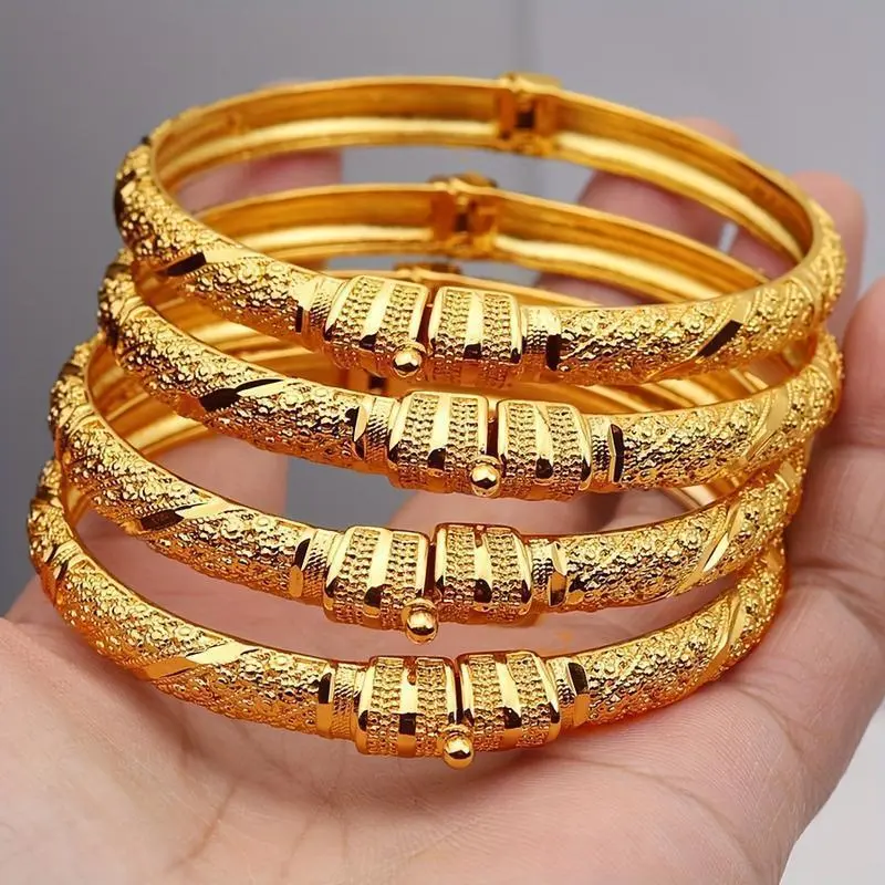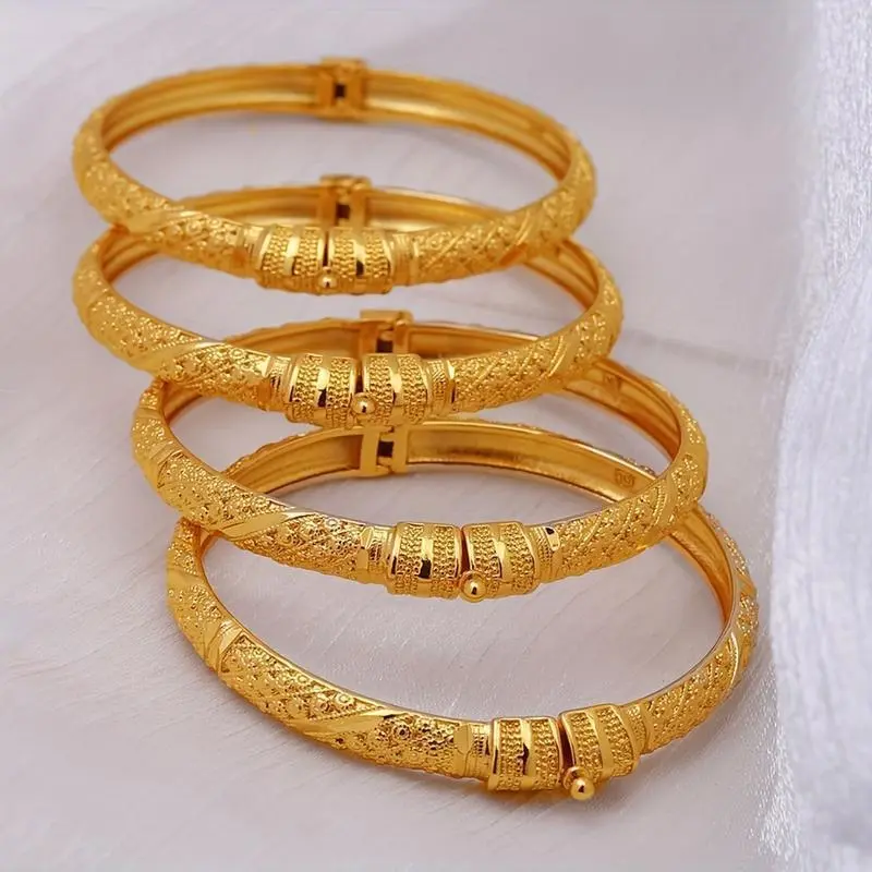 Middle East Luxury 4pcs Set of Golden Trendy Bracelets/Elevate your style with this exquisite Middle East Luxury 4pcs Set of Golden Trendy Bracelets. This set is perfect for brides, bridesmaids, and ladies looking to add a touch of elegance to their outfits./Key Features:/Cultural Significance:/Enhance your jewelry collection with this luxurious set of golden trendy bracelets, perfect for any occasion.