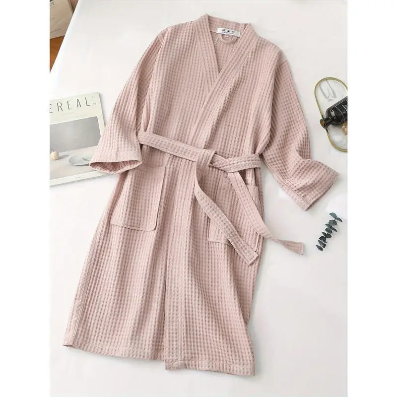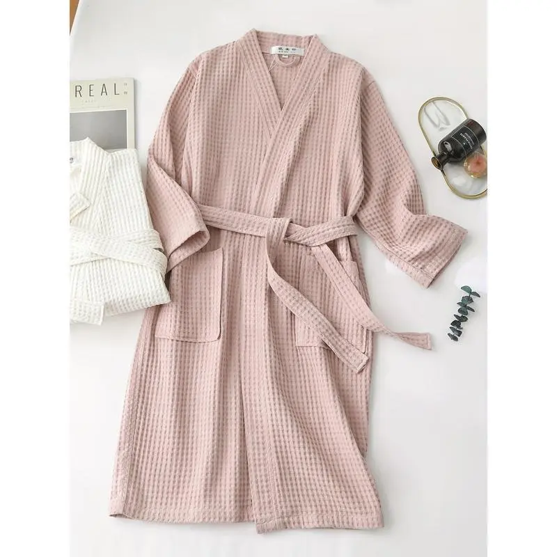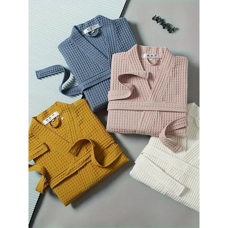 [Cotton Unisex Bathrobe Waffle Style] Cotton Waffle Style Unisex Bathrobe Womenswear Gowns Men's Cotton Flannel Robe