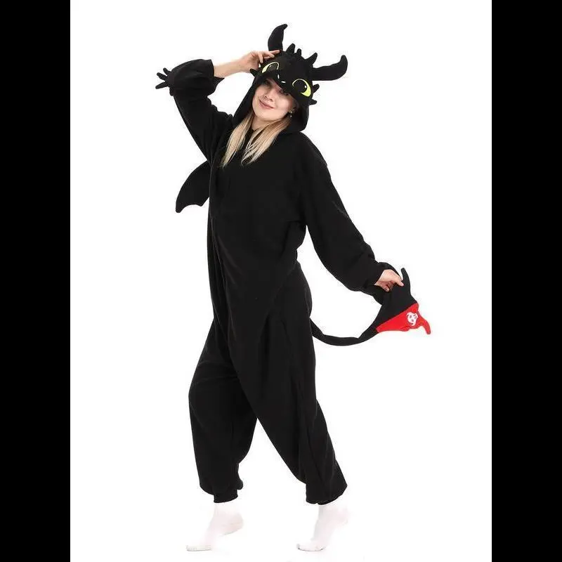Women's Toothless Onesie Pajama Jumpsuit - Cartoon Animal Halloween & Christmas Party Costume, Comfy Loungewear Sleepwear Set Womenswear Homewear