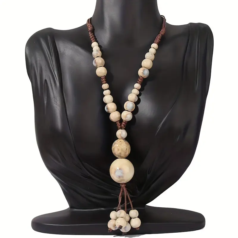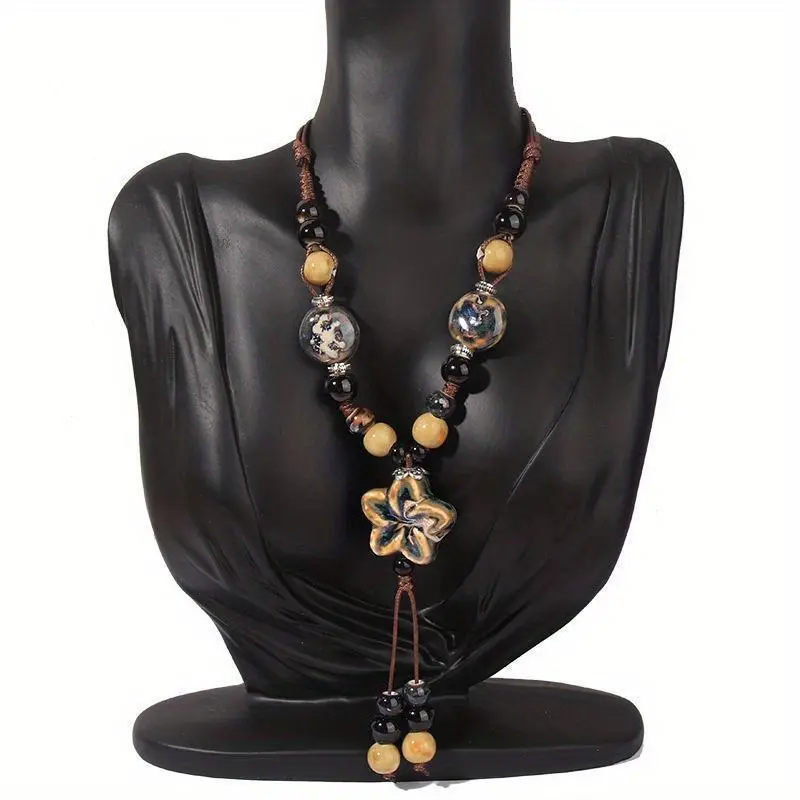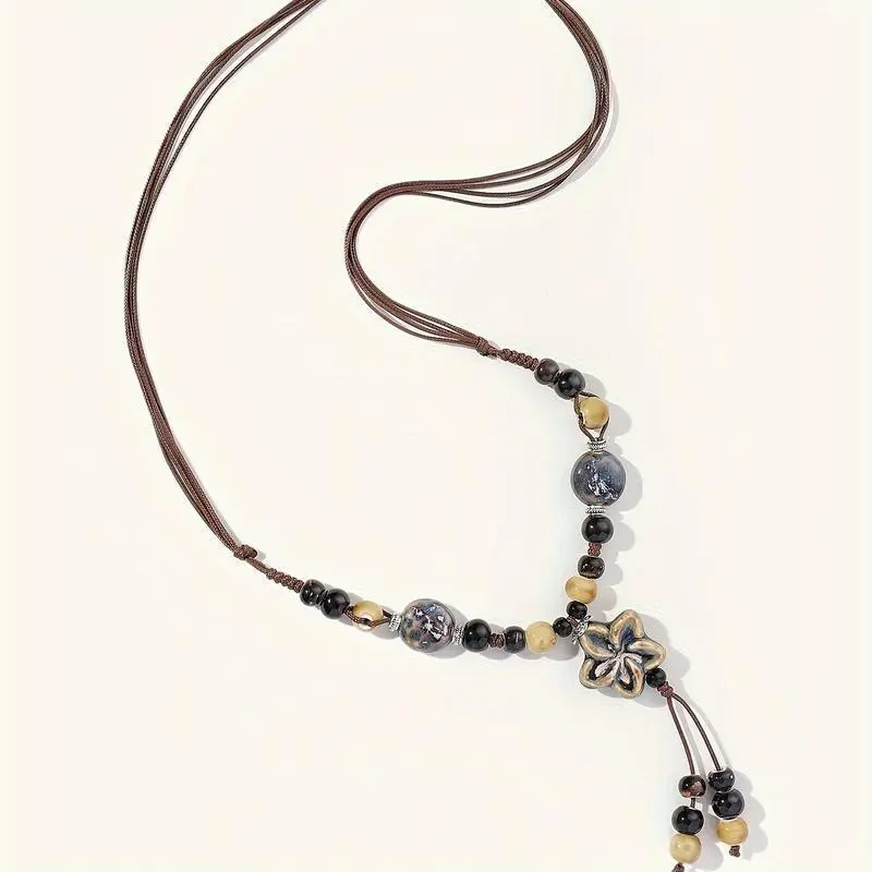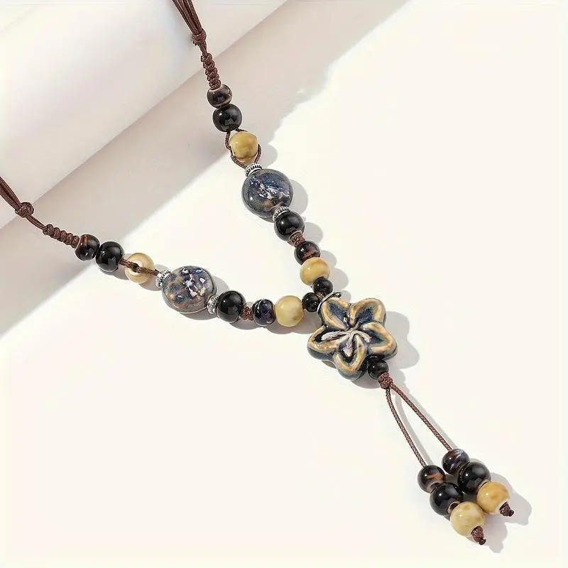 1Pc Exquisite Bohemian Chic Ceramic Adjustable Length Necklace - Elegant Daily Wear for All Seasons - Chinese Inspired Ethnic Style Pendants Turquoise Jewelry