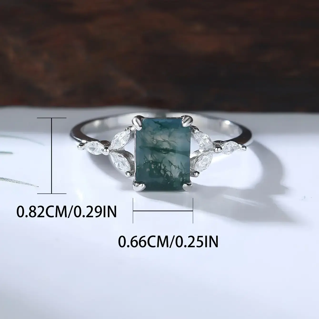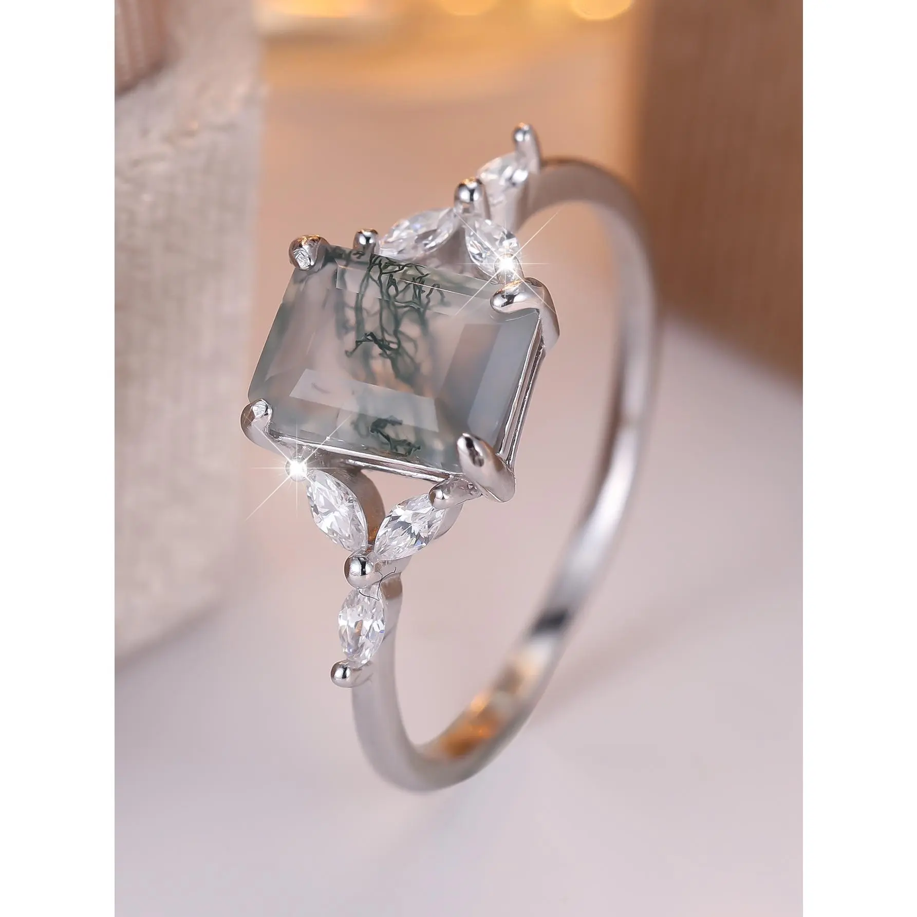 Elegant 925 Sterling Silvery Ring with Unique Natural Aquatic Agate - Perfect for Weddings & Engagements, Women's Fashion Jewelry