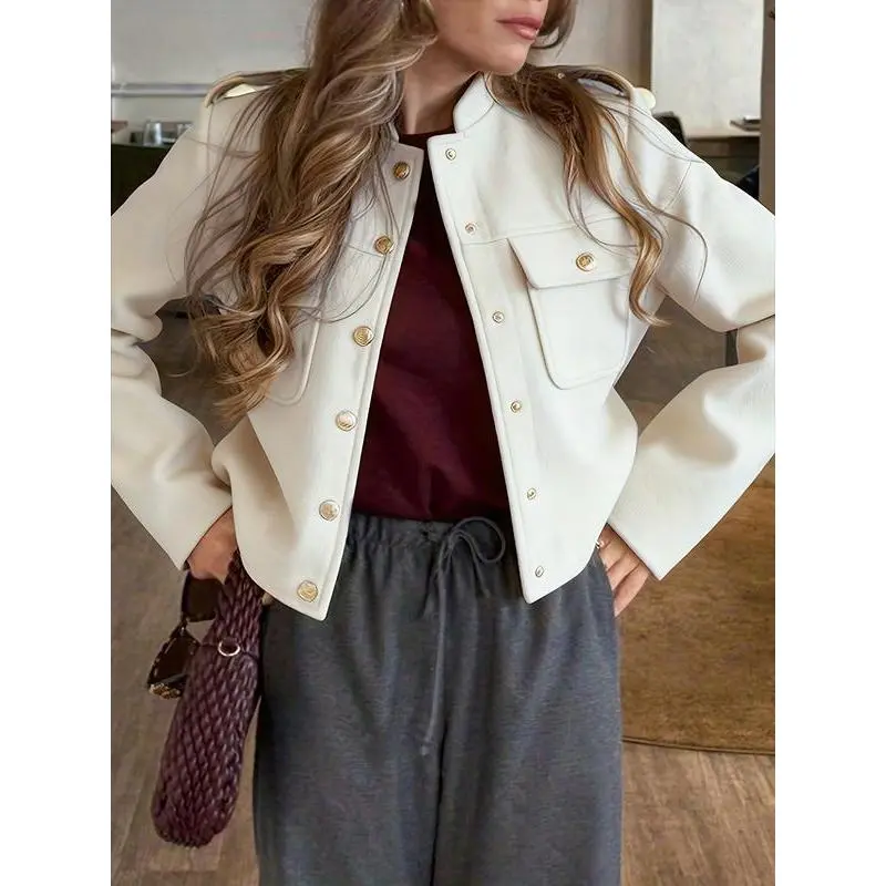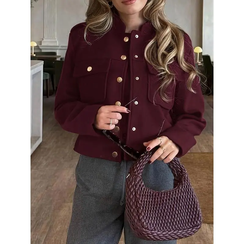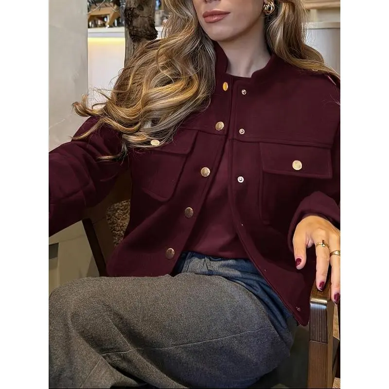 ��Unique Button Detail��: Features distinctive button decorations that add a unique touch to its solid color, setting it apart from typical outerwear. ��Fitted Silhouette��: The fitted construction emphasizes the body's shape while providing a tailored look, enhancing the overall aesthetic appeal. ��Seasonal Suitability��: Designed specifically for Fall and Winter, it offers warmth and style during cooler seasons, accommodating seasonal fashion needs. ��Quality Materials��: Crafted from high-quality fabrics that ensure durability and a refined appearance, making it a worthy addition to your wardrobe.