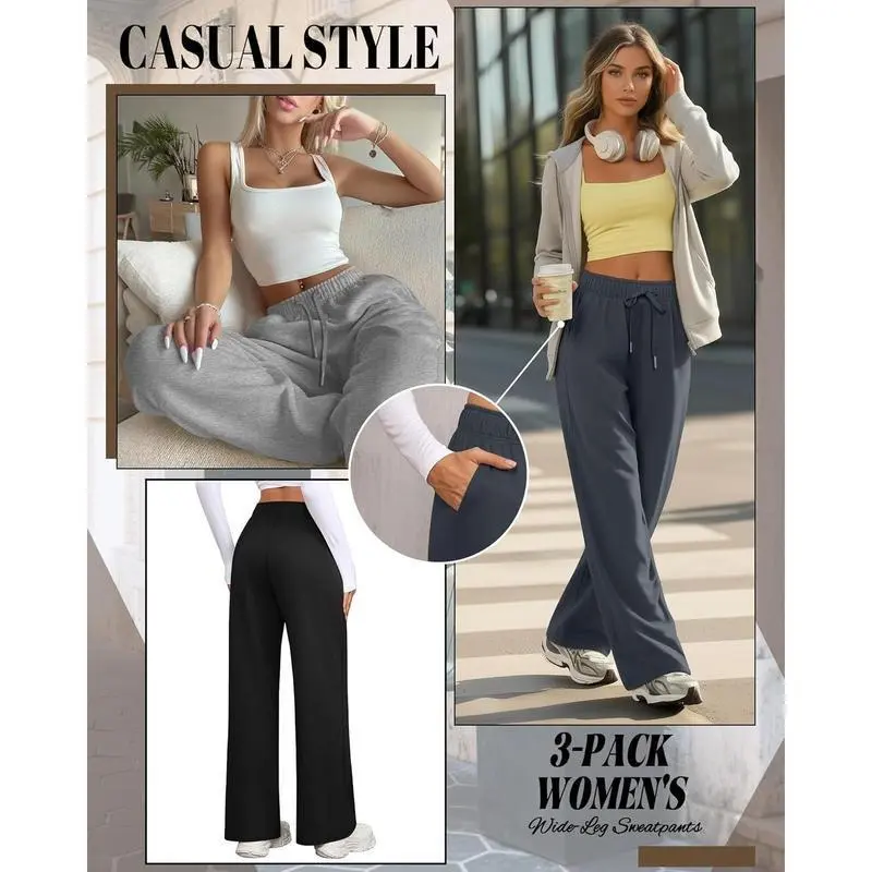 Skin Friendly and Durable Fabric: this women's lounge pants is made of 95% polyester and 5% spandex; The fabric is soft and breathable, warm and sweat wicking, with good elasticity and no shrinkage; It is an ideal choice for fall and winter Convenient Pocket Design: the deep side pockets of these wide legged pants can hold important items such as mobile phones and keys, which is convenient for your travel, and the loose straight leg design makes your movements more comfortable Elastic Waistband Fits All Body Shapes: the straight pants combine a loose elastic waistband and an adjustable drawstring, which will not tighten the waist; You can adjust the drawstring, which better fits your body shape, and is easy to put on Suitable for Many Occasions: these straight pants are daily wear and sportswear, such as office, travel, vacation, dating, beach, shopping, home, sleeping, sports, yoga, running, fitness, etc Easy Maintain and Interchangeable Set: the joggers for women support machine wash, are not easy to fade and pill, and keep shape; Each set includes 3 pairs of lounge yoga pants in different colors, so you can have a new choice every day
