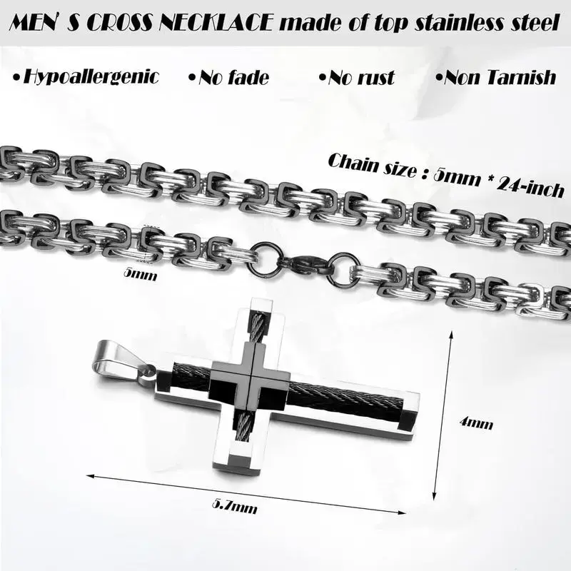 Product Description ? FLORIDECO stainless steel large cross chain silver/gold/black cross pendant byzantine chain necklace cross necklace for men ,24" daily Size:Pendant 25.7*4CM Length61CM - Stylish Design: The Cross Necklace for Men features a large cross pendant with a sleek and modern design, making it a fashionable accessory for any outfit. - High-Quality Material: Made from premium silver, gold, or black-plated stainless steel, this necklace is durable and resistant to tarnishing, ensuring long-lasting wear. - Adjustable Length: The Byzantine chain necklace is designed with an adjustable length, allowing you to customize the fit according to your preference and style. - Versatile: This cross necklace is suitable for various occasions, whether it's a casual day out or a formal event, adding a touch of elegance and spirituality to your look. - Perfect Gift: With its impressive design and quality craftsmanship, this necklace makes a thoughtful gift for birthdays, anniversaries, or any special occasion for the men in your life. ?