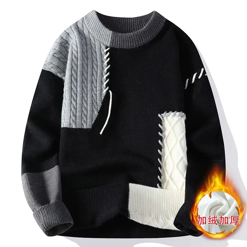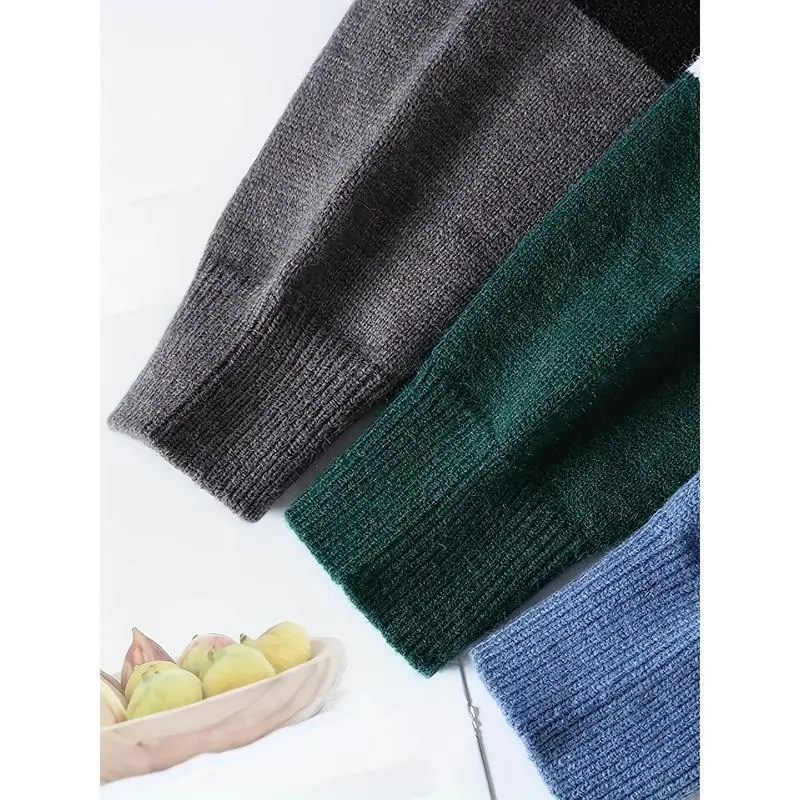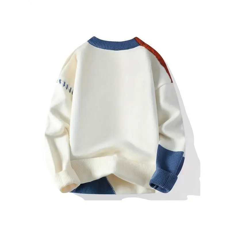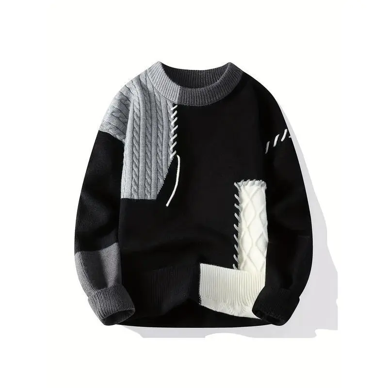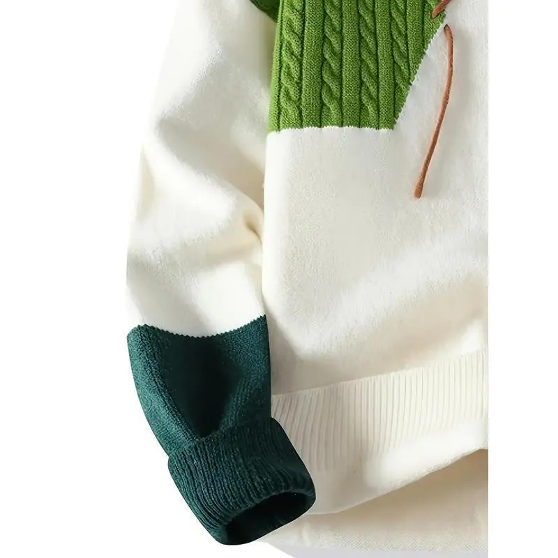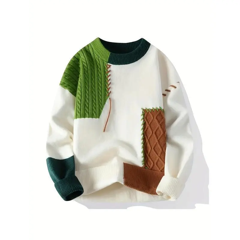 Men'S Two-Tone Green/Brown/Black Sweater - Oversized Drop Shoulder Sleeves, Geometric Color Block Design, Cozy Loose Fit Knit Pullover for Casual & Formal Outfits,
