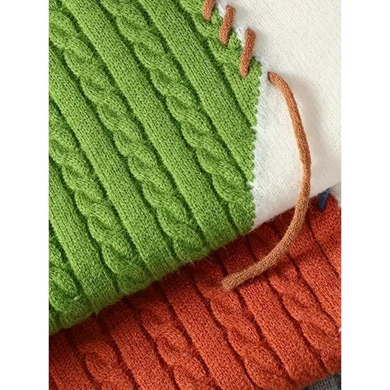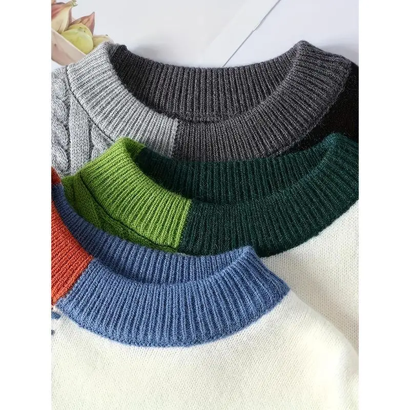 DOKOTOO Women's Colorblock Sweatshirt Crewneck Patchwork Long Sleeve Knit Pullover Shirts Knitted Top Dressy Casual Tops Womenswear Knitwear