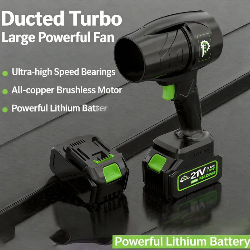 Cordless Lithium-Ion Blower: High-Velocity Turbo Fan & Ducted Air Blaster—Industrial-Grade Dust Removal, Snow Clearing, and Powerful Airflow—Handheld Rechargeable Unit for Both Home and Outdoor Use