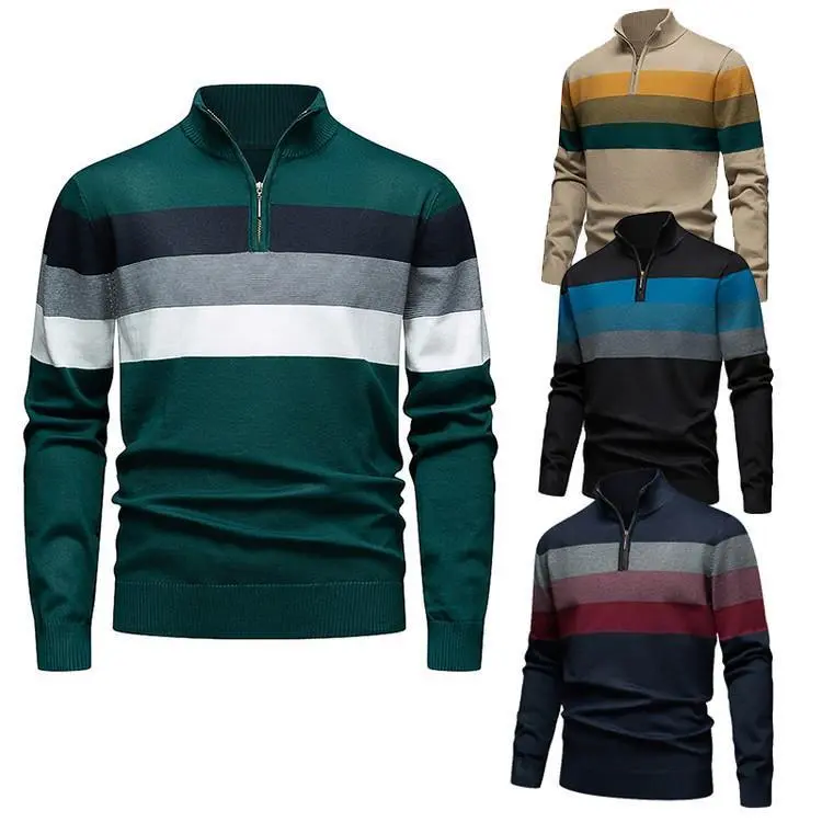 Men's casual knitted sweater, warm pullover sweater with zipper, fall and winter bottoming knit sweater, sweater jacket, suitable for daily, sports, going out