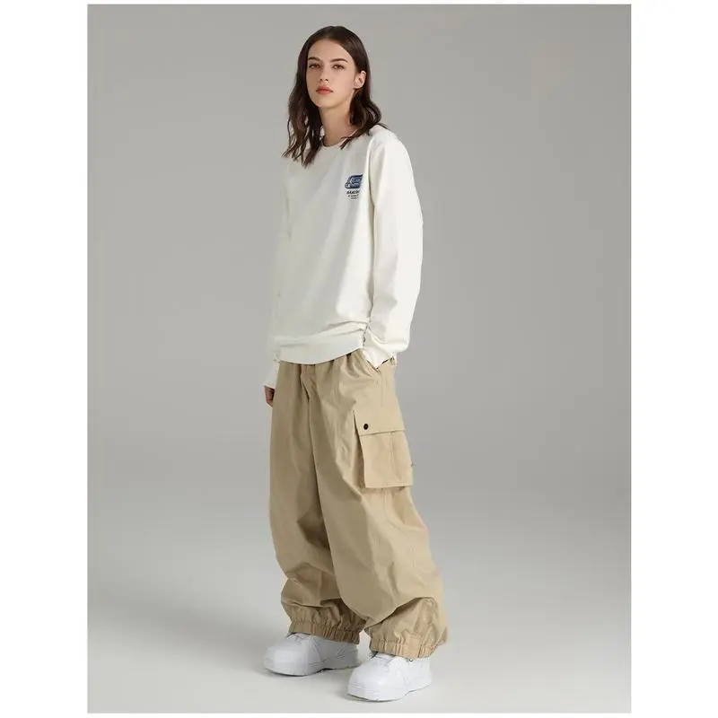 Stay protected and stylish on the slopes with these unisex snowboard pants. Designed with a relaxed, comfortable fit, they feature fully waterproof and windproof fabric to keep you dry and warm. The adjustable cuffs and multiple functional pockets offer both convenience and a modern look. Perfect for skiing, snowboarding, or any winter adventure, these pants combine performance with everyday streetwear style.