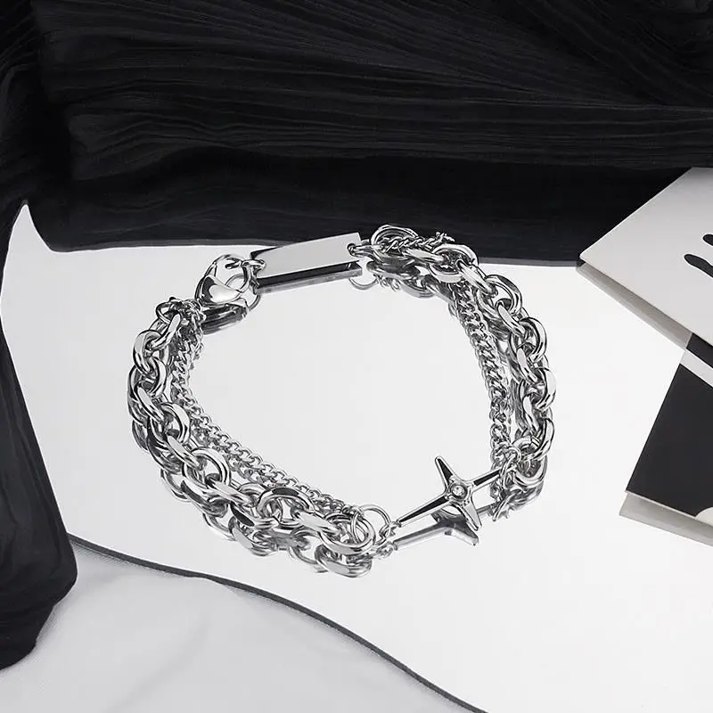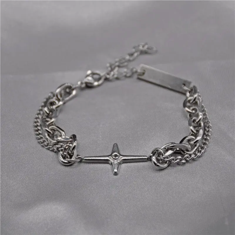 Titanium Steel Star Cross Bracelet For Men Women Trendy Hip Hop Double-Layer Charm Bracelet Unisex Jewelry Punk Accessories