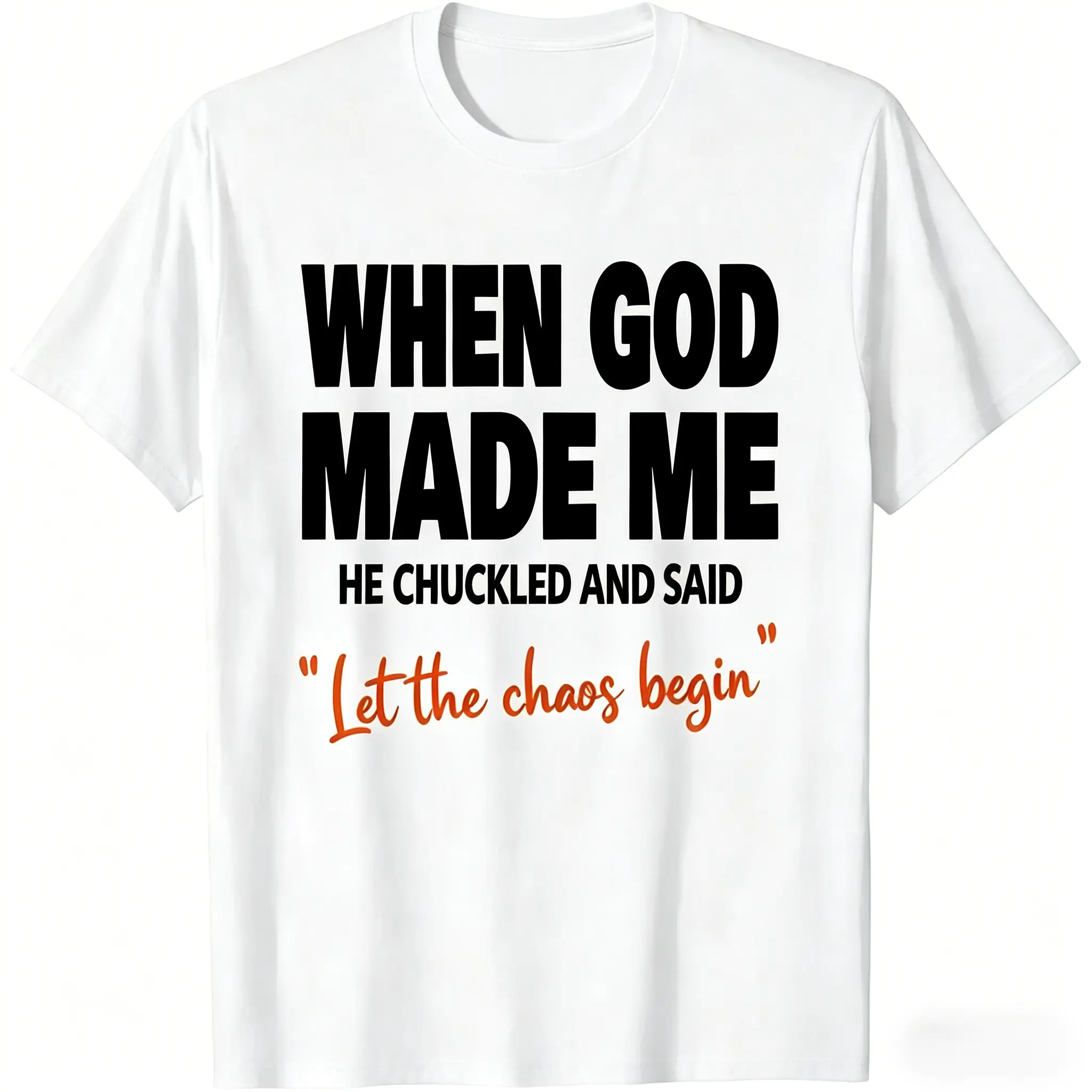 100% Cotton When God Made Me He Chuckled T Shirt, Funny Christian Golf Graphic Tee, Inspirational Faith Apparel, Spiritual Streetwear Top, Perfect Gift for Men and Women
