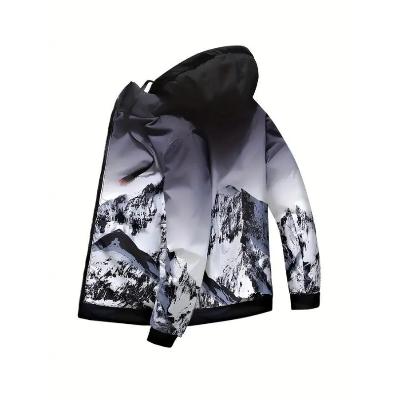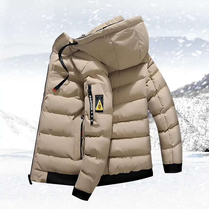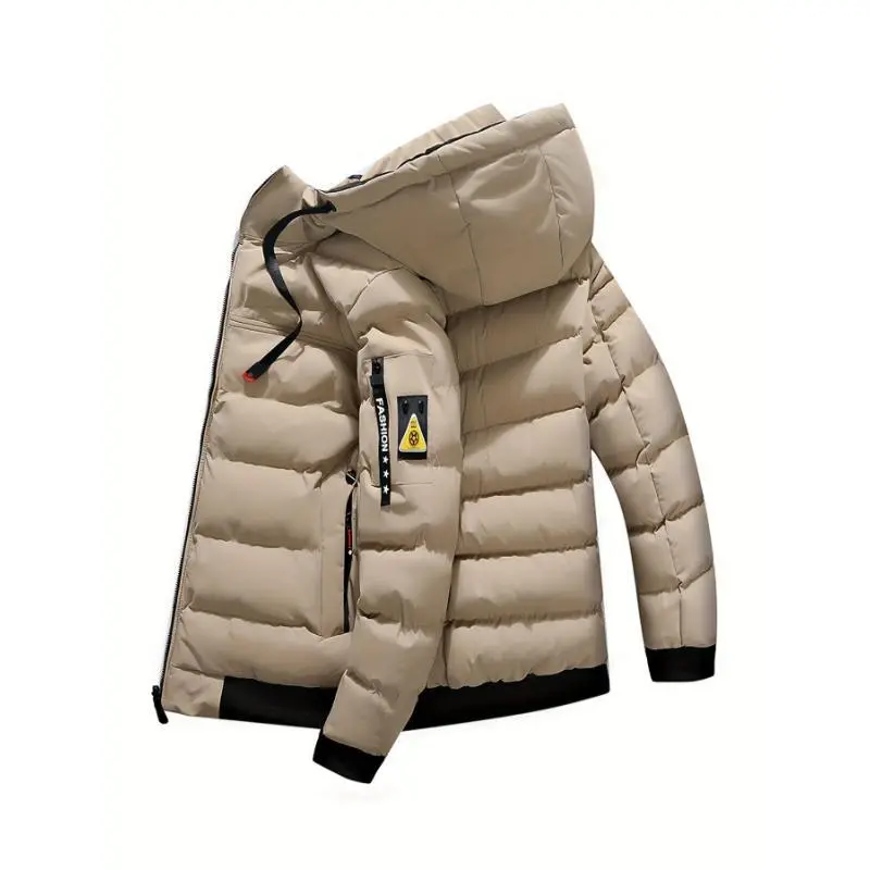 Men'sCasualHoodedPolyesterPufferJacketwithPockets-SolidColor,LongSleeve,Non-StretchFabric,CasualStyle,Hiking&DailyWear,RegularFit,Spring/Fall&WinterSuitable