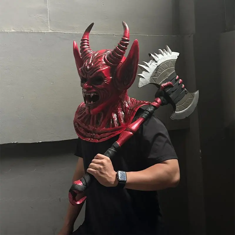 NewTerrorDevilHornMaskAdultUnisexEVARedDemonHelmetHorribleFullFaceMasksHalloweenCarnivalPartyCostumePropCustomizationtakes10days