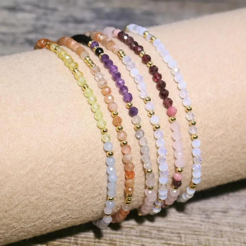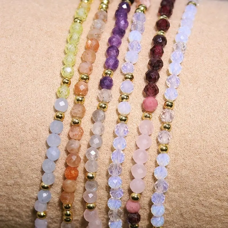 Tiny Gemstone Beaded Choker Necklace, Dainty Faceted Gemstone Beaded Necklace, Waterproof Crystal Beaded Choker, Mother's Day Gift, gift for her