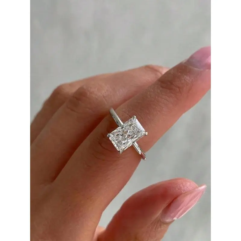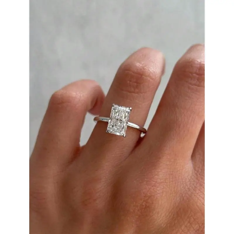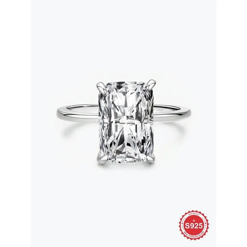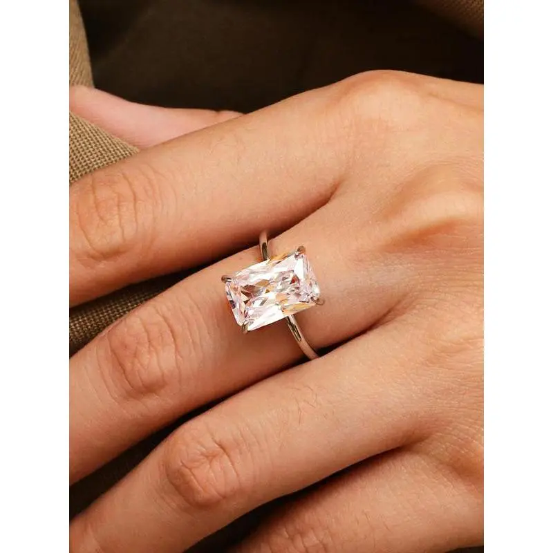 S925 Sterling Silver Square Shaped Artificial Zircon Engagement Ring, Luxury Promise Wedding Ring for Women, Elegant Jewelry for Women