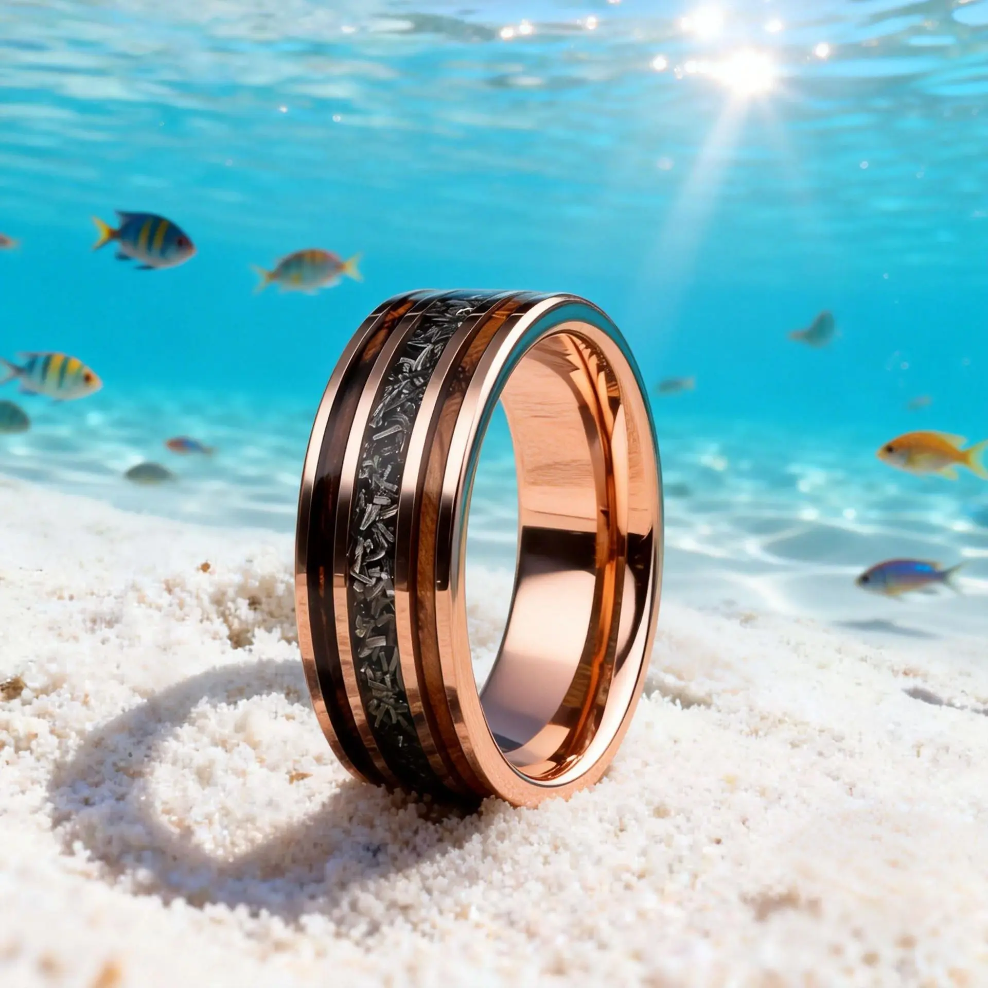 Nugget Ring 8mm Rose Gold Stainless Steel Three Grooved Men's Plain, High Quality for Men