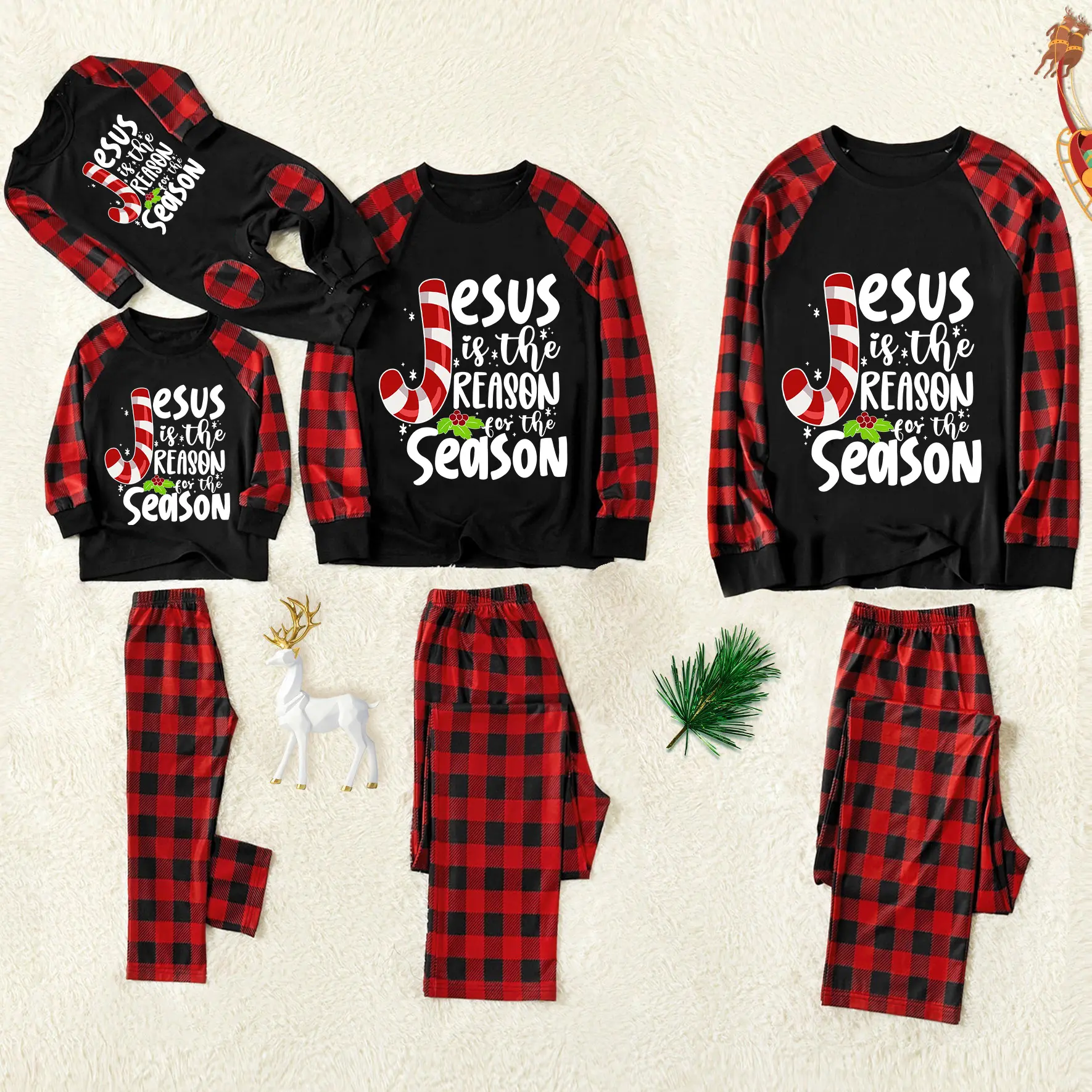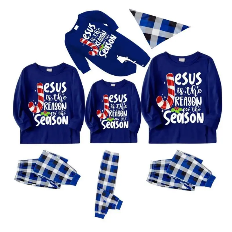 2pcs Christmas Pajamas Family Set For Surprise PJ Party Plaid Loose Pants Lounge Wear Lollipop Jesus White Letter Print Crew Neck Pullover Family Matching Long Sleeve SleepwearPerfect For Holiday Photos & Family Gatherings Included Dog Bandana