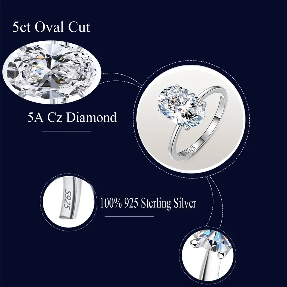 Elegant 925 Sterling Silver Ring ✨ Upgrade your look with this exquisite oval-cut ring! Made from 925 sterling silver (hypoallergenic, stamped), it features a 5CT cubic zirconia (stone size: 1.2cm×0.79cm, band width 1.7mm) and weighs 2.6g. Perfect for engagement, anniversary, daily wear, or special occasions. Premium 925 Silver A must-have to add luxury to your jewelry collection! 🎁 Ideal for women, this ring is a fine jewelry and dating gift.