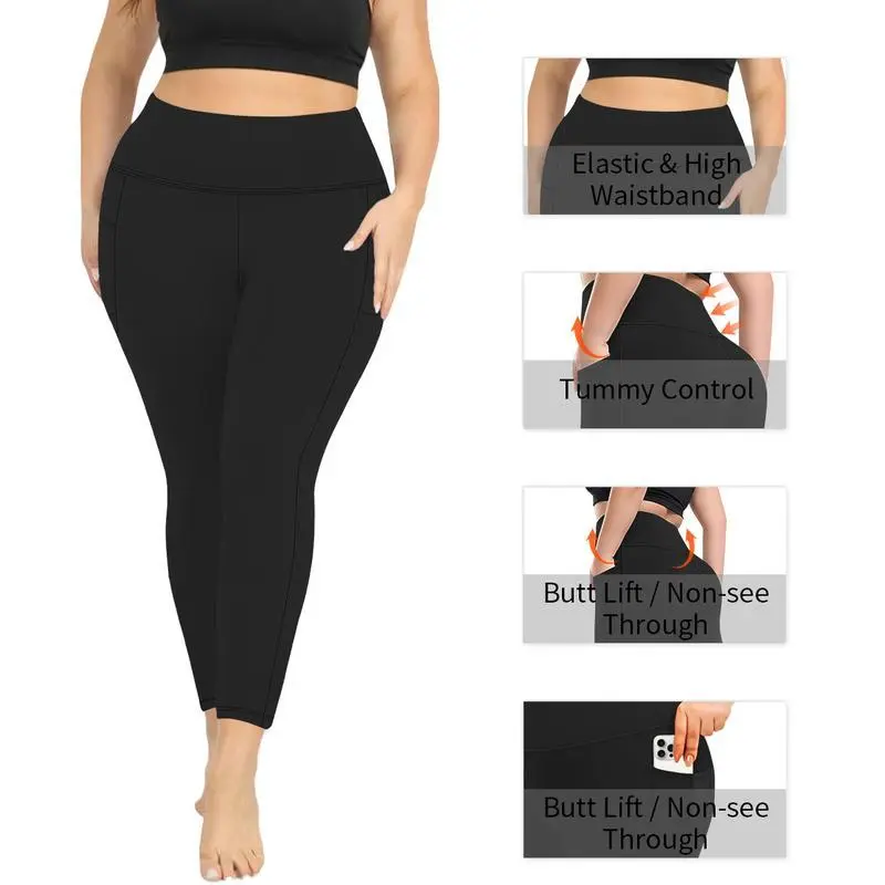 About this item ? SOFT & NON SEE-THROUGH FABRIC - You will love our plus leggings with pockets once you put them on and experience a perfect combination of softness and stretchiness. 92% polyester and 8% Spandex give you freedom of movement no matter what you??re doing. ? PLUS LEGGINGS with classical Pockets - With 2 big side pockets on each leg, our workout yoga pants helps to store your necessary items like phone, keys or cards, not easy to fall out. Release your hands and better focus on your activity. ? High Wasit & Tummy Control - A full-length plus leggings with tummy control give you a slim figure. No camel toe and also durable! Perfect for yoga, exercise, cycling, running, marathons, fitness, hiking,any type of workout or just casual everyday use. ? PLUS SIZES FOR YOU - Plus leggings with pockets are stretchy to fit sizes1XL-5XL. Please choose your size according our size chart. With our plus pockets leggings make you more confident and beautiful. ? EASY CARE & BEST SERVICE - You can just throw it into the washing machine without worry about deformation and color fading. We offer a 30-day, full-money-back services for our plus leggings with pockets. If you have any questions , we will reply asap!