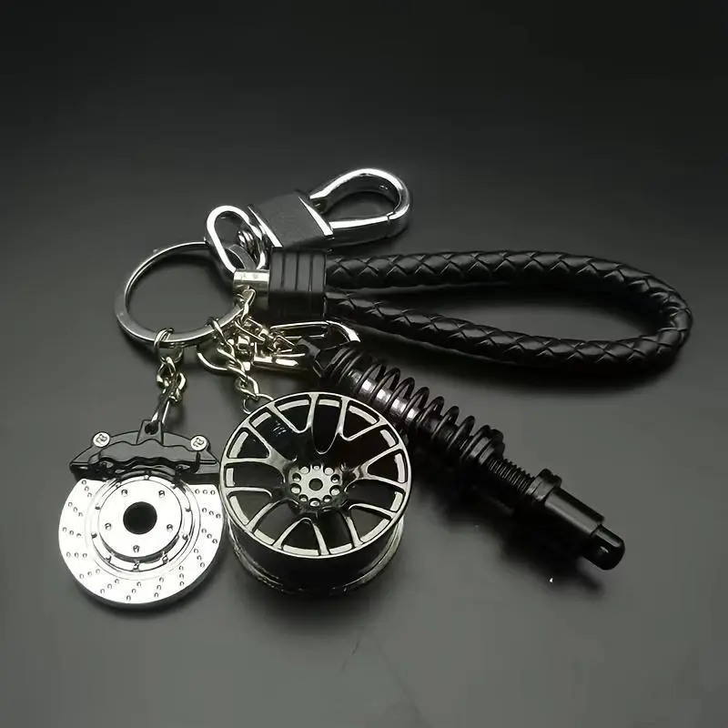 Carpartskeychain-blackturbo,silvergearbox,rainbowtireedges,redbrakediscs,redshockabsorbers,forboyfriendcarenthusiaststocollectpursekeychainkeychainholder