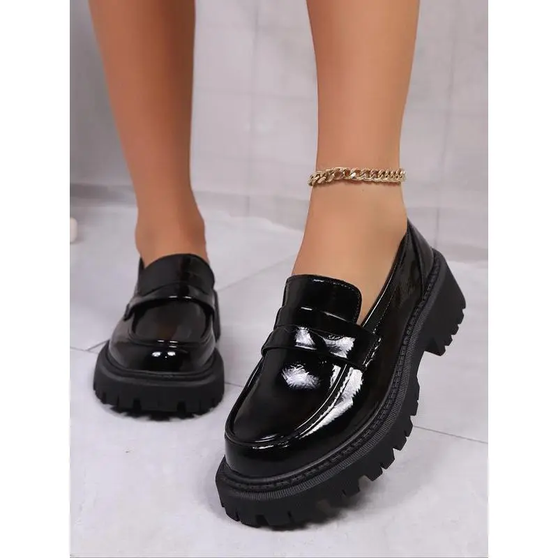 Women's Soft Comfortable British Style Platform Shoes, New Thick Sole Loafers, Durable Commuting Korean Fashion, Plus Size Available Footwear