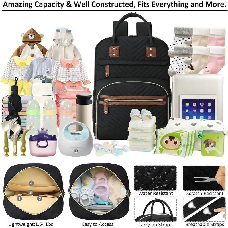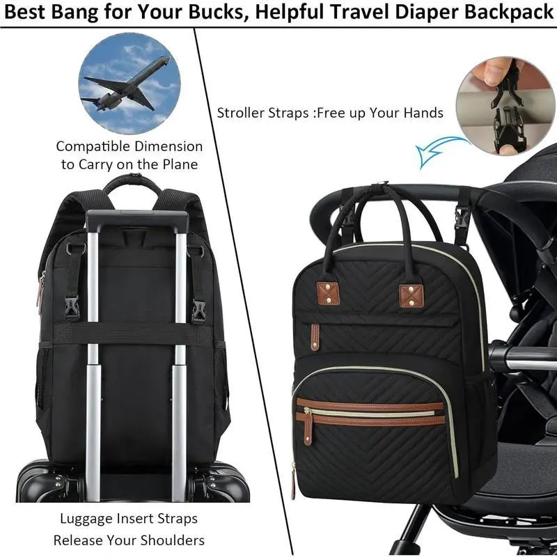 Diaper Bag Backpack for Women Large Capacity with Insulated Pockets Multifunctional Diaper Bags For Girl Boy Bags For Mama Maternity Travel Bag Black