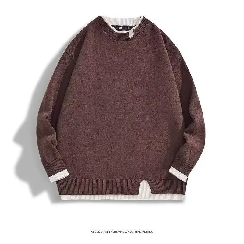 Fall Winter Men Knitwear Fake Two-Piece Cashmere Fashion Casual Sweater