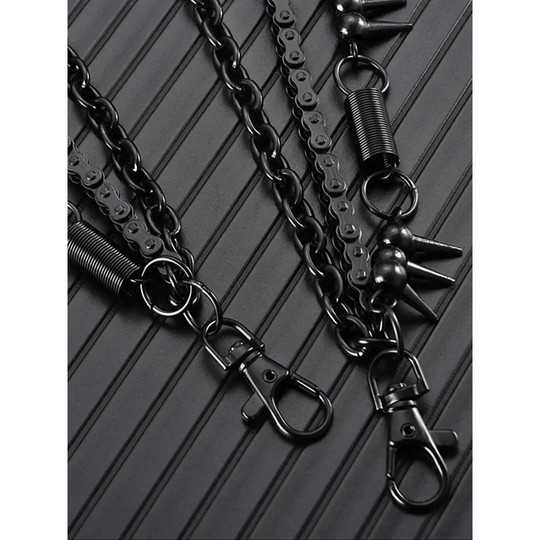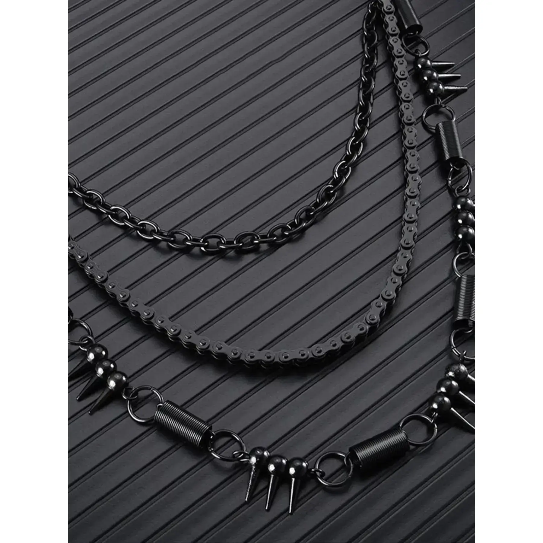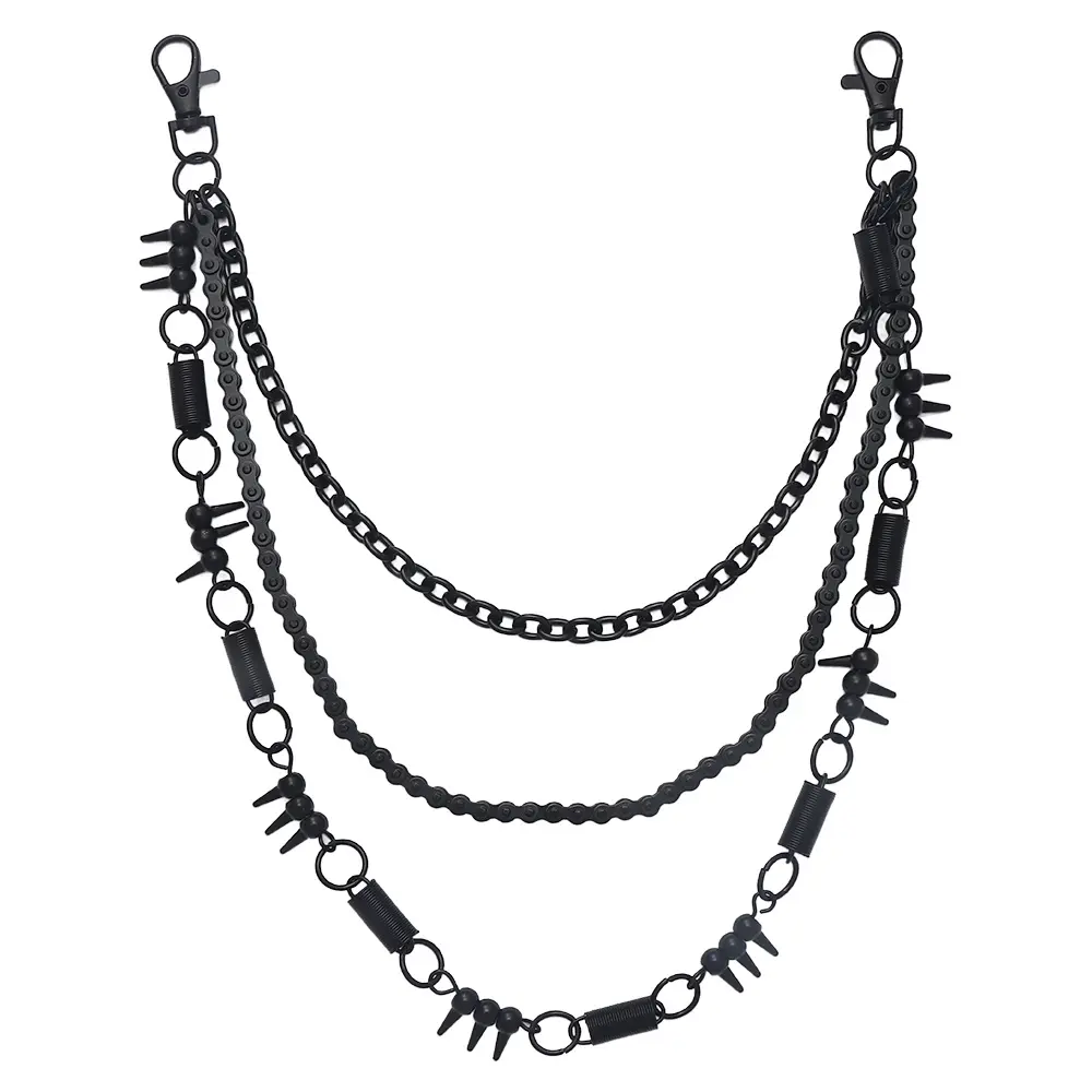Punk style fashion heavy metal black bicycle chain, triple layered decoration, cool rock retro style men's pants chain, adjustable waist chain, fashionable and exquisite clothing accessories