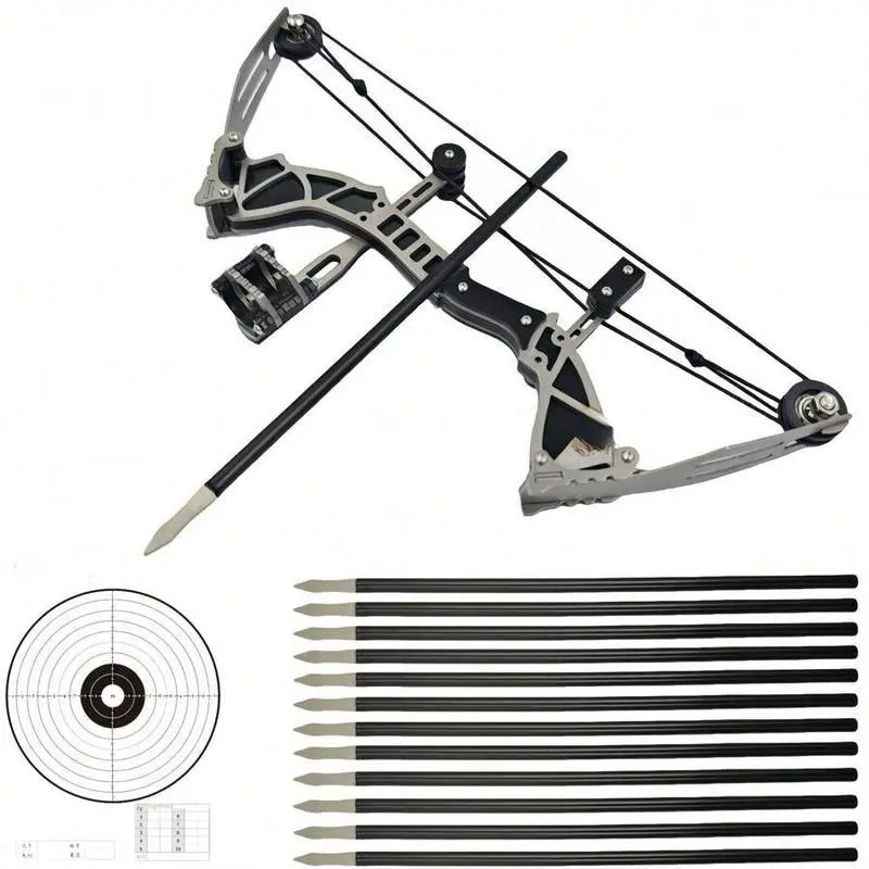 9.5"MiniBowSet,CompoundBow+12Arrows+TargetPaper+Wrench,MiniCompoundBowMiniHuntingBowRightHand/LeftHandHuntingShootingPracticeArcheryEntertainmentFun