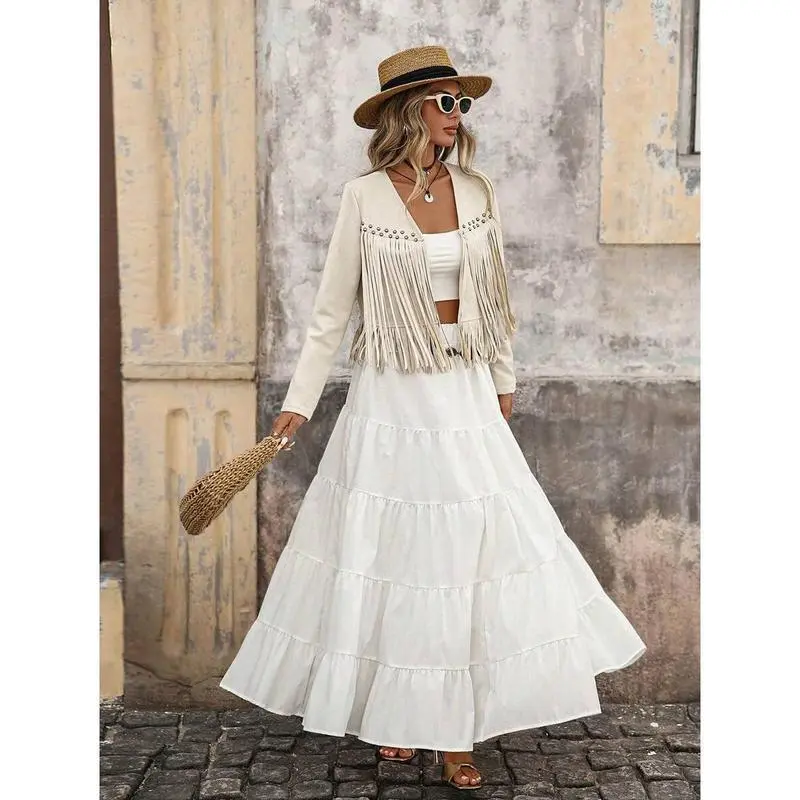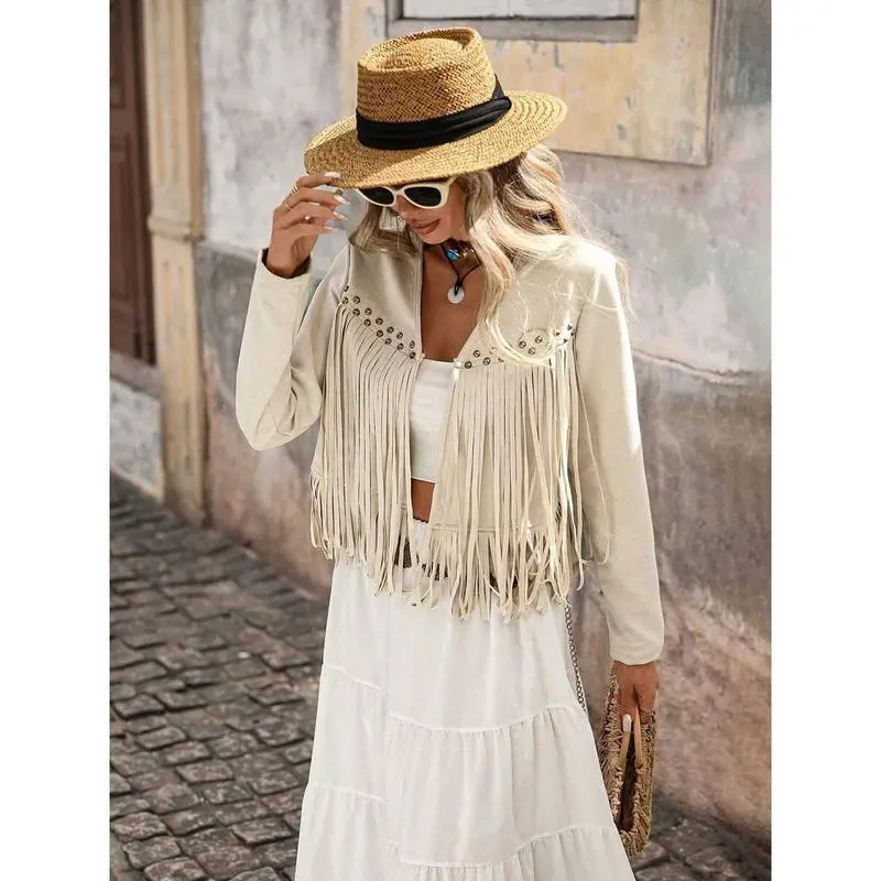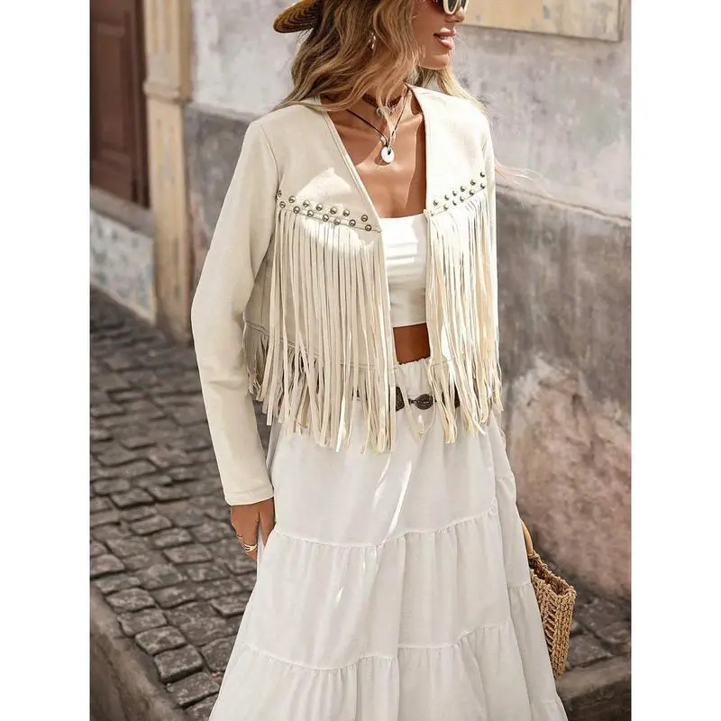 Women's Solid Color Fringe Trim Open Front Jacket In Fall/Winter